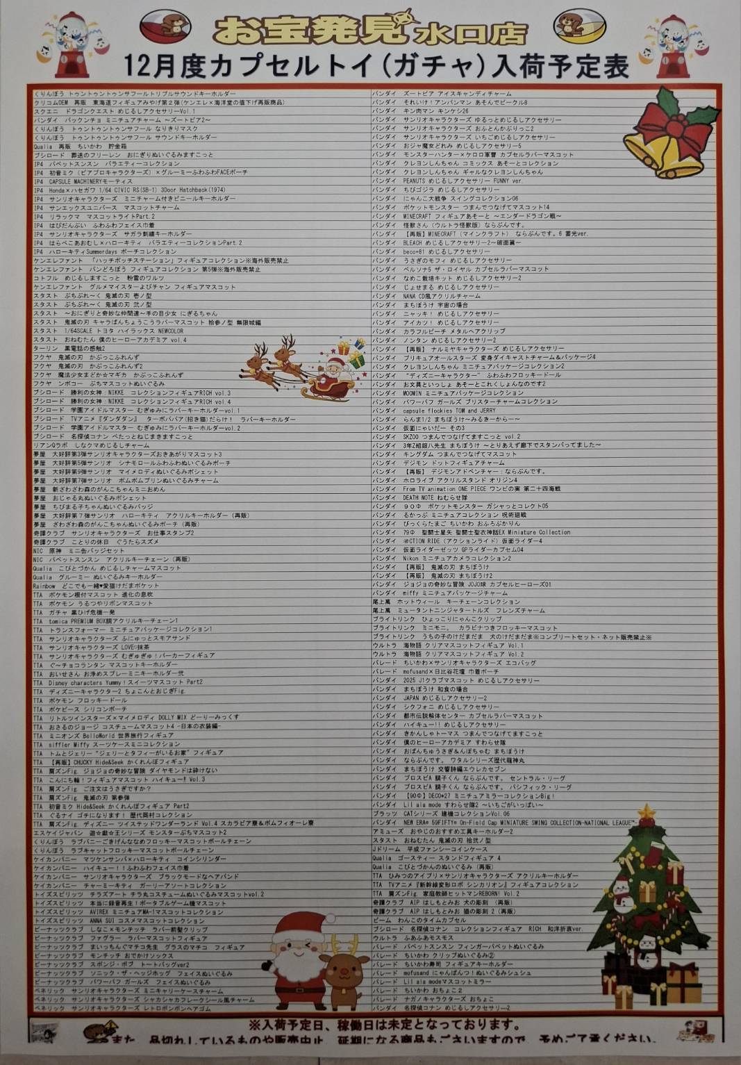 カプセルトイコーナー 12月度当店の入荷予定表 はりだしました。 ぜひ…
