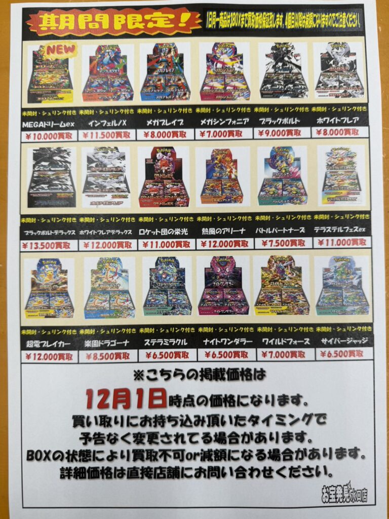 ポケモンカードカードBOX買取リスト更新しました! 個数が集まり次第掲…