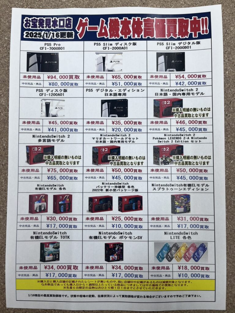 ゲーム本体買取価格更新しました🎮 ※2026/1/16現在の価格となり…