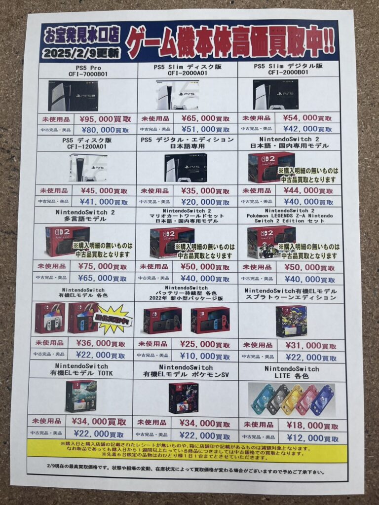 各種本体買取価格更新しました🎮 ※2026/2/9現在の価格となりま…