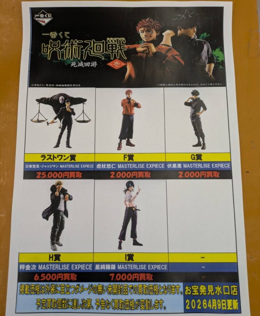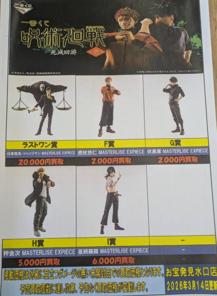 一番くじ呪術廻戦死滅回遊〜壱〜 の強化買い取りリスト更新しました! …