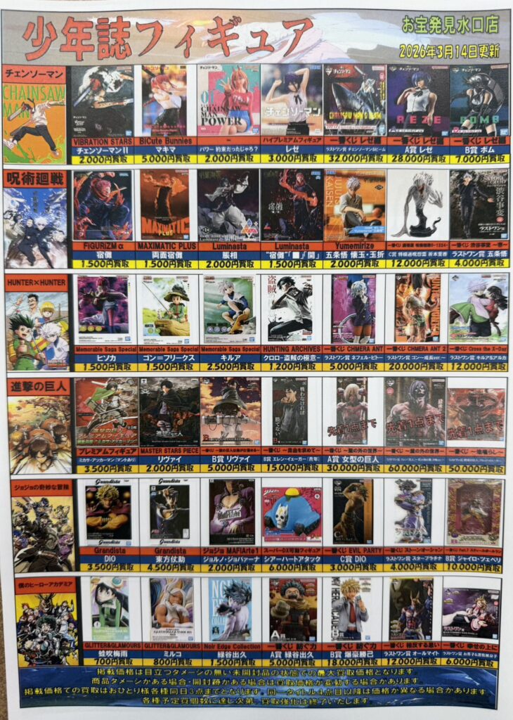 少年誌プライズフィギュア◦一番くじフィギュアの強化買取タイトルを更…