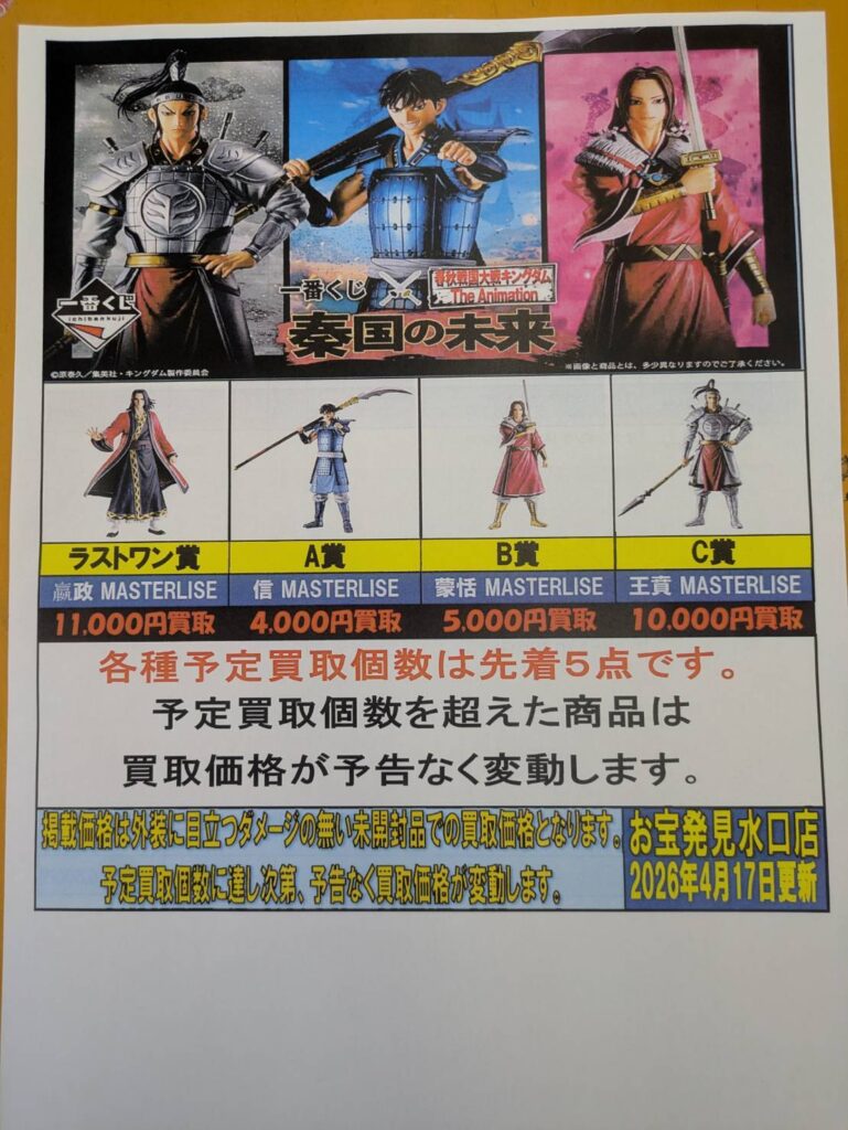 一番くじ 春秋戦国大戦 キングダム The Animation の強化買い取り 予定…