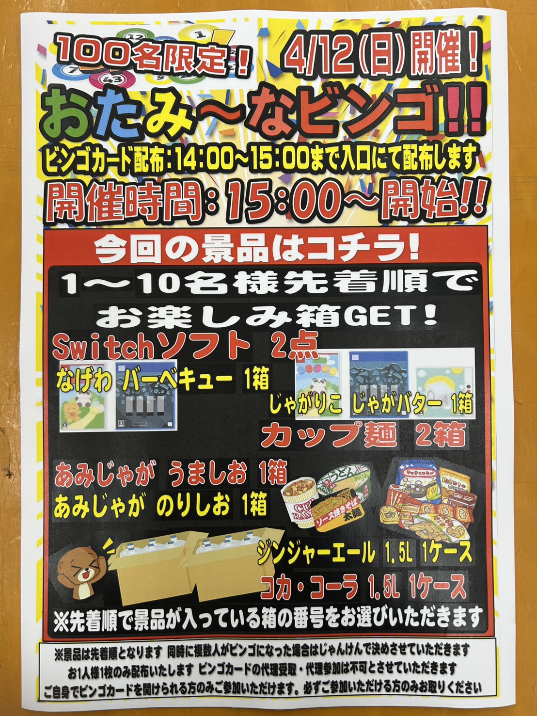 ★4月12日(日)15時イベント開催★ ビンゴ大会をおこないます! お菓子や…