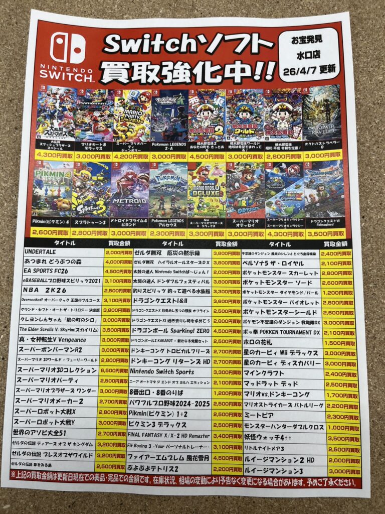 Switch Switch2ソフトの買取価格更新してます この機会にぜひ当店買取…