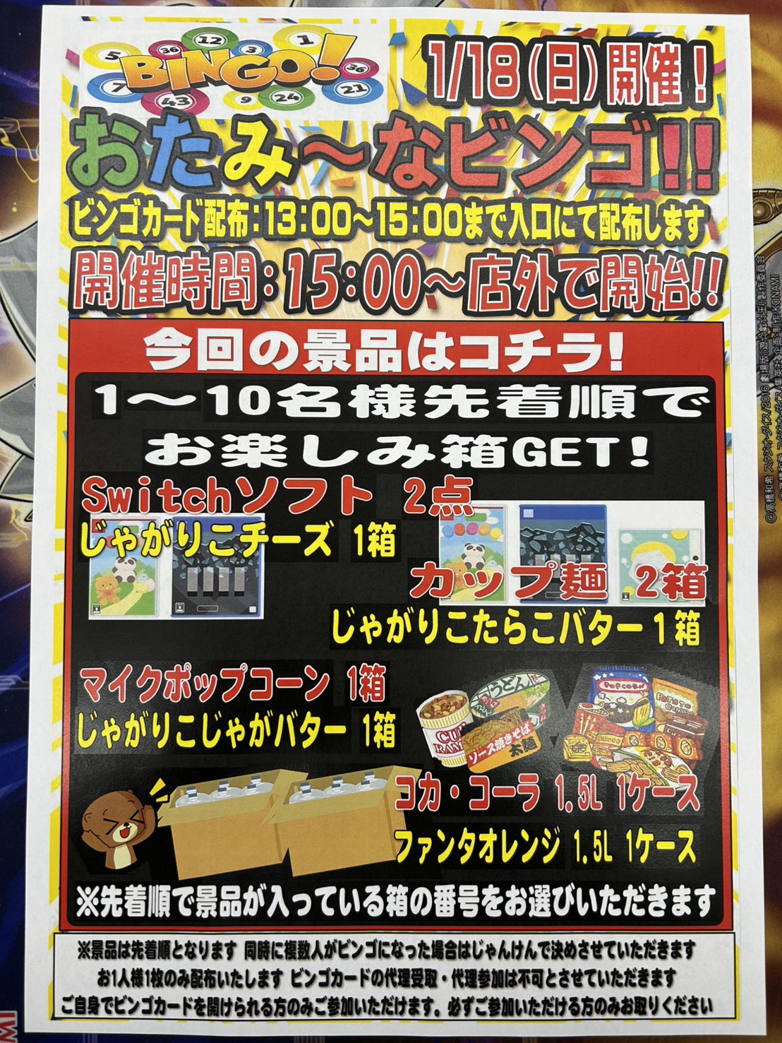 ◆《1月18日(日)15時》 ビンゴ大会◆ NEW イベント 2026年1月17日 1月18日(日)15時イベント開催 ビンゴ大会をおこないます。 お菓子やジュース等の景品をご用意しております。 皆様のご来店お待ちしております ************************ こちら↓もぜひチェックしてみてくださいね♪(*´▽`*) ・最新のイベント情報はこちら ・最新の買取情報はこちら