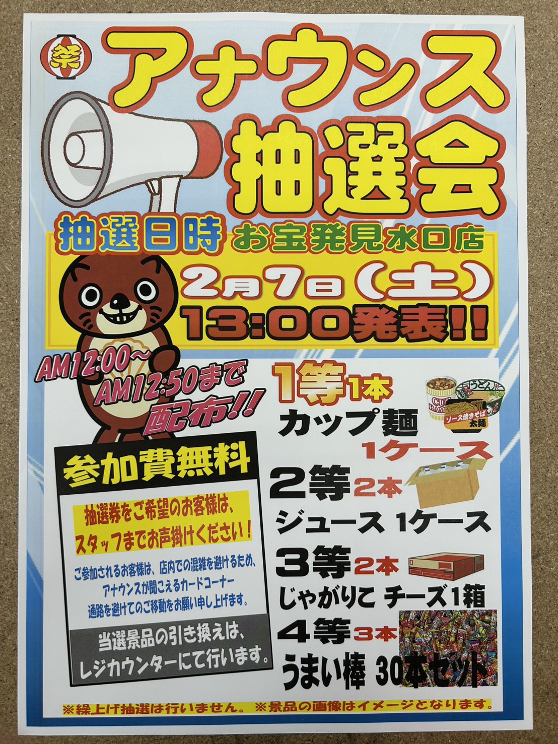 ★2月7日(土)13時イベント開催★ NEW イベント 2026年2月7日 ★2月7日(土)13時イベント開催★ アナウンス抽選会をおこないます! 抽選券の配布は 12時~レジにて配布いたします。豪華景品をご用意しておりますので 皆様のご来店お待ちしております! ************************ こちら↓もぜひチェックしてみてくださいね♪(*´▽`*) ・最新のイベント情報はこちら ・最新の買取情報はこちら