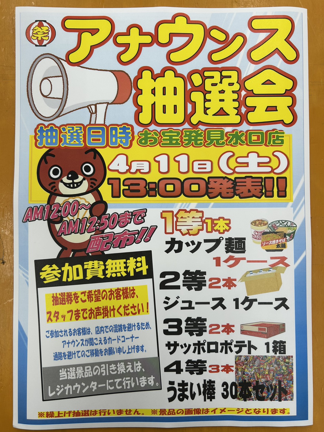 ★《4月11日》アナウンス抽選会をおこないます!★