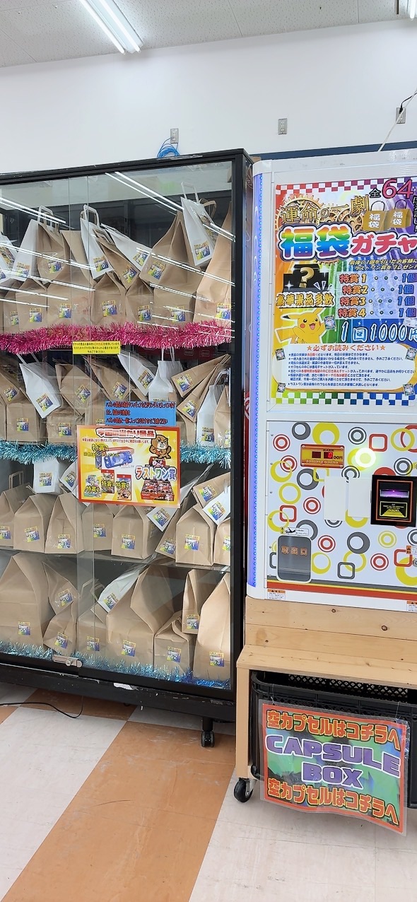 ★福袋ガチャ稼働中です!★ ガチャ 2025年10月19日 🛍️⚡️福袋ガチャ稼働中です🎉✨ 1回1,000円で必ず福袋が当たる福袋ガチャ🌟 特賞のチケットが入っていれば SwitchLite本体や ポケカのBOXなどが 当たるかも🏆✨ ぜひチャレンジしに来てください💖
