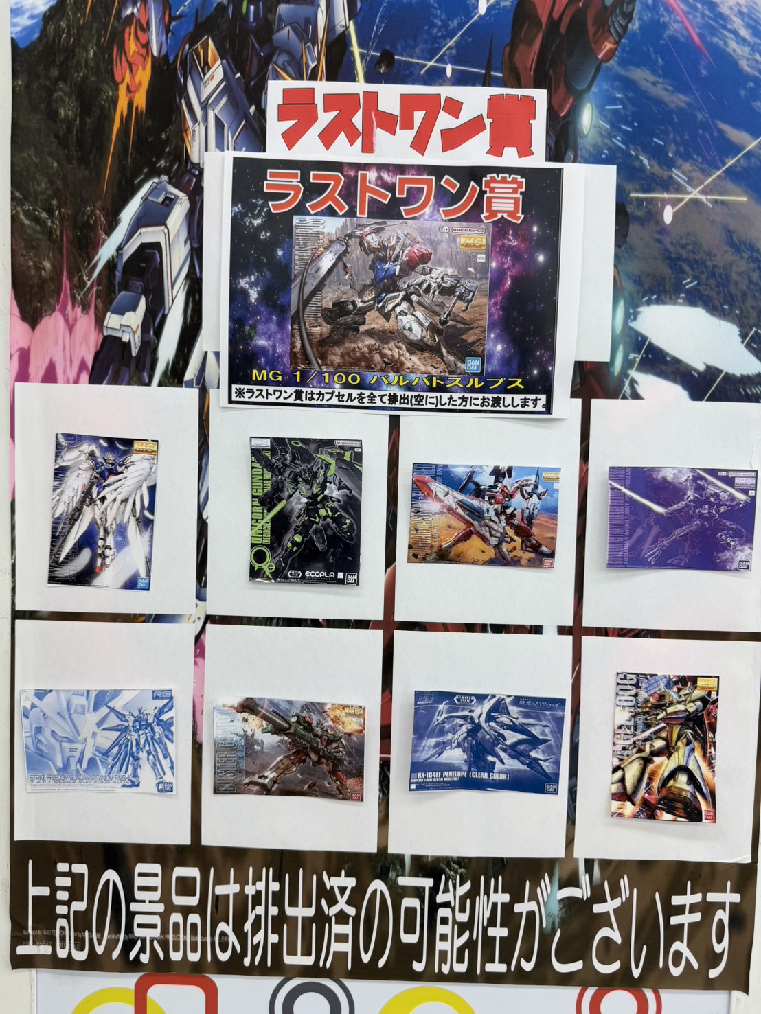■ガンプラロッカーガチャが景品を新たに稼動しました!■ ガチャ 2025年12月31日 ガンプラロッカーガチャが景品を新たに稼動しました! 今回のラストワン賞にはMG 1/100 バルバトスルプスをご用意しました! 皆様の挑戦お待ちしてます!