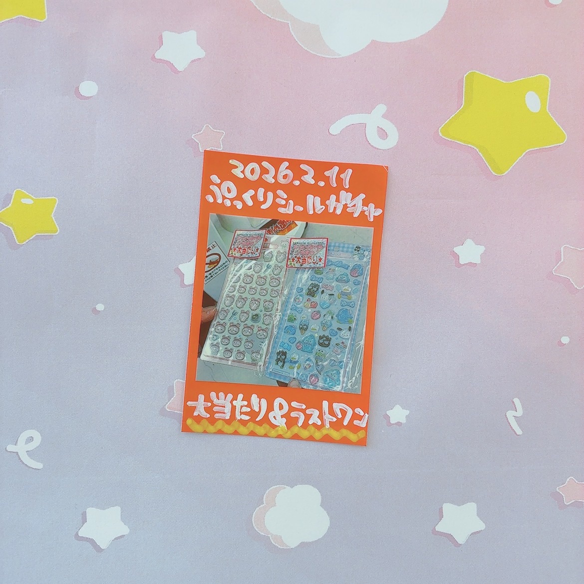 💖ぷっくりシールガチャ大当たり🎉他 ガチャ 2026年2月11日 💖ぷっくりシールガチャ大当たり🎉 ラストワン賞もGETです!! はぴだんぶいドロップシール🌟 ちいかわ古本屋ドロップシール🦀 ご獲得されました🎊✨ おめでとうございます🎀 🎉ドラクエガチャA賞でました✨ 竜王ぬいぐるみ🐉✨ ご獲得されましたお客様 おめでとうございます㊗️