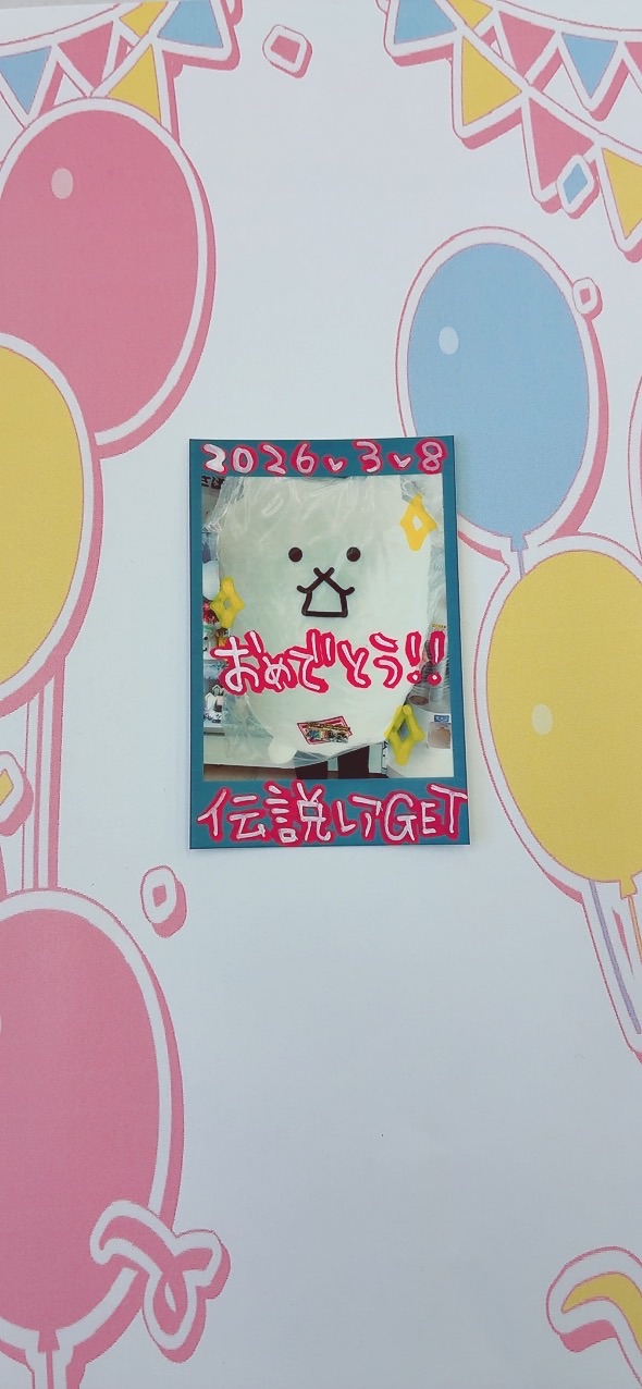 🐈にゃんこ大戦争ガチャ伝説レア賞でました🏆 他 ガチャ 2026年3月8日 🐈にゃんこ大戦争ガチャ伝説レア賞でました🏆 一番くじラストワン賞の 大きなぬいぐるみ🧸✨ ご獲得されましたお客様 おめでとうございます🎉 🌟ポケモンぬいぐるみガチャ🌟A賞 🌟仮面ライダーガチャ🌟S賞 🌟カービィガチャ🌟A賞 🌟たまごっちABCキャッチャー🌟A賞 🌟ハイキューガチャ🌟A賞 GETおめでとうございます!