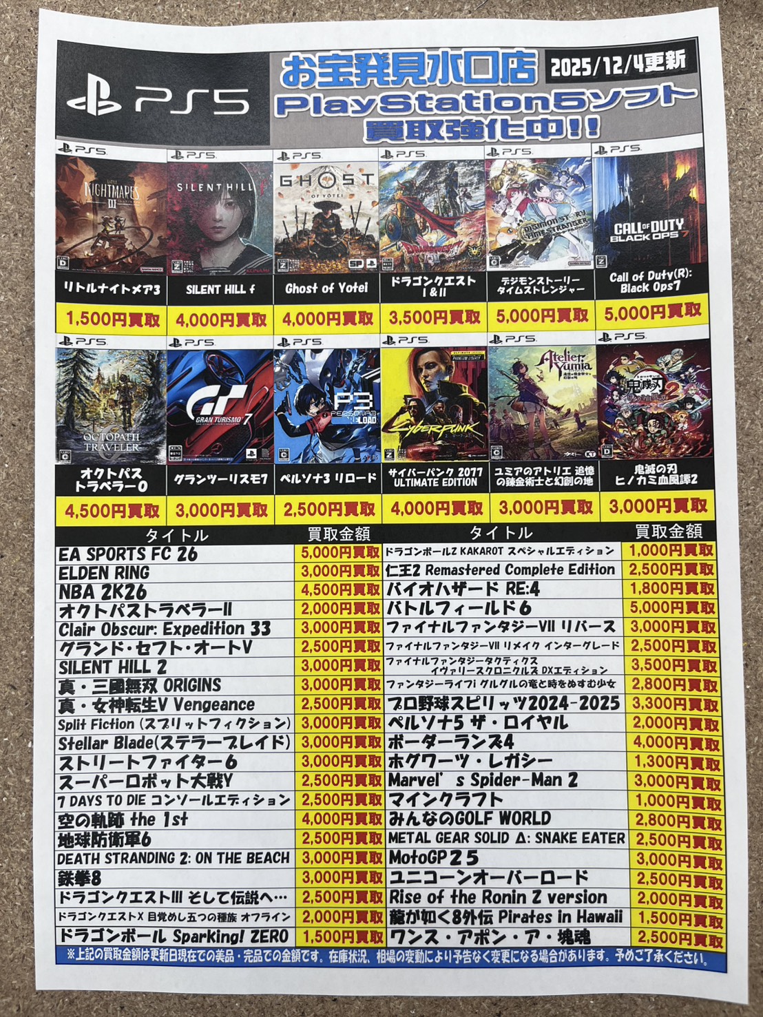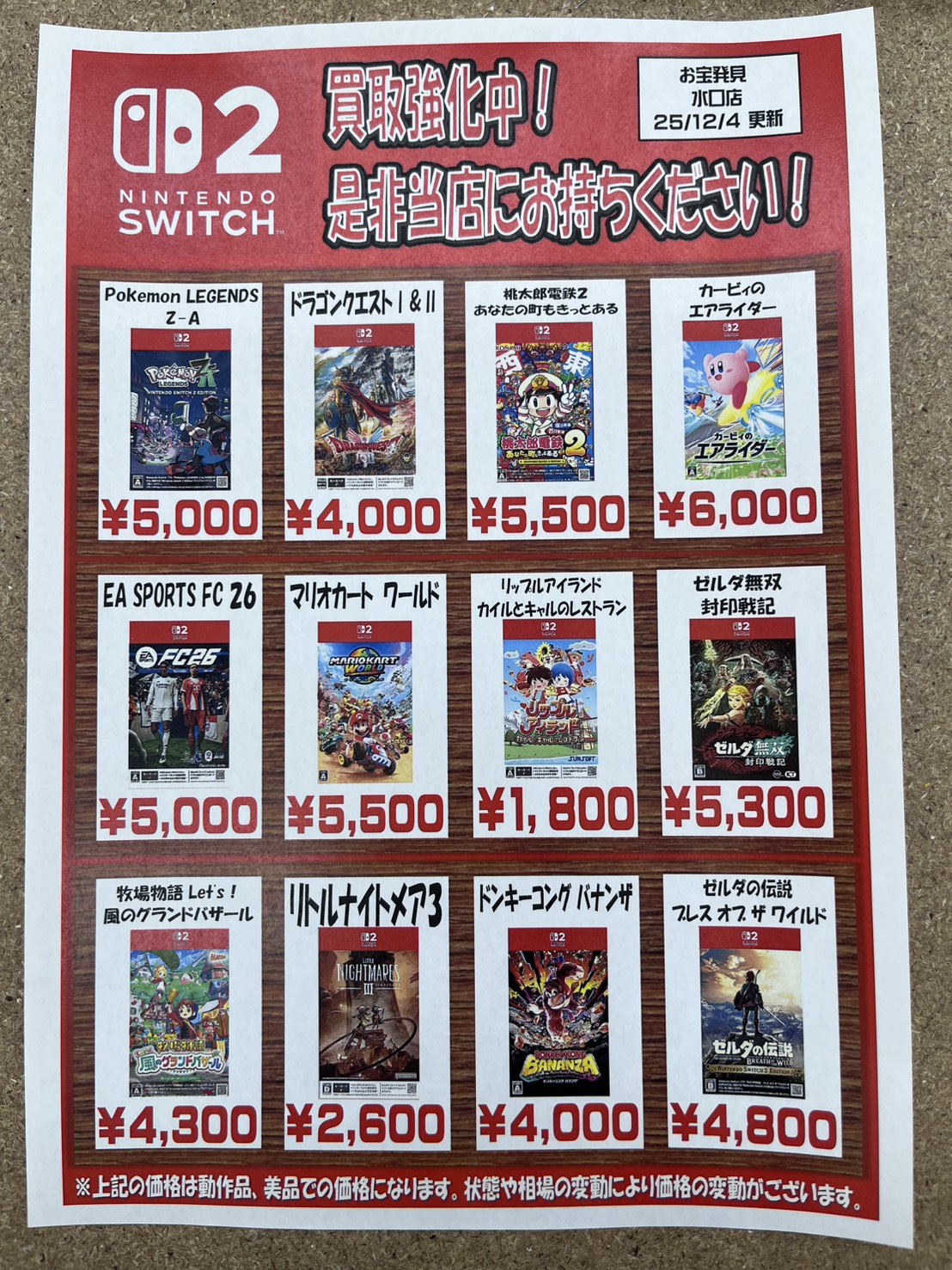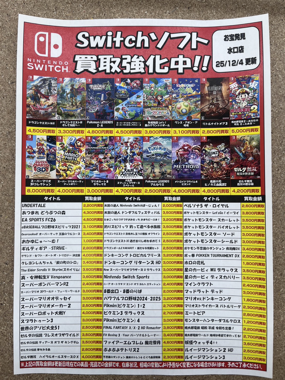 ✨ゲーム各種、買取価格を更新しました!✨ NEW 買取告知 ゲーム 2025年12月4日 ゲーム各種、買取価格を更新しました!✨ ※2025/12/4現在の価格となります。 在庫状況などによってお値段が変動いたします。予めご了承ください。 ************************ こちら↓もぜひチェックしてみてくださいね♪(*´▽`*) ・最新のイベント情報はこちら ・最新の買取情報はこちら