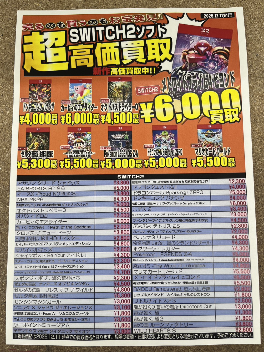 Switchソフト、Switch2、PS5ソフトの買取価格を更新しました!✨ NEW 買取告知 ゲーム 2025年12月11日 Switchソフト、Switch2、PS5ソフトの買取価格を更新しました!✨ ※2025/12/11現在の価格となります。 在庫状況などによってお値段が変動いたします。予めご了承ください。 ************************ こちら↓もぜひチェックしてみてくださいね♪(*´▽`*) ・最新のイベント情報はこちら ・最新の買取情報はこちら