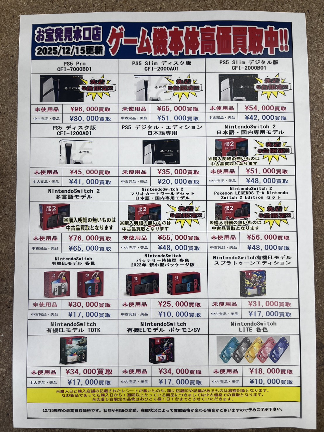 ゲーム機本体の買取価格を更新しました🕹💖 NEW 買取告知 ゲーム 2025年12月15日 ゲーム機本体の買取価格を更新しました🕹💖 PS5、Switch本体がまだまだ足りない為高価買取強化中です‼️ 是非お持ちください🎮 ※2025/12/15現在の価格となります。 在庫状況などによってお値段が変動いたします。予めご了承ください。 ************************ こちら↓もぜひチェックしてみてくださいね♪(*´▽`*) ・最新のイベント情報はこちら ・最新の買取情報はこちら