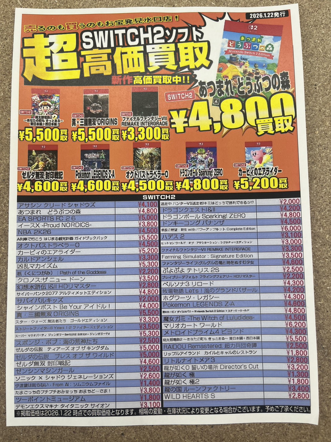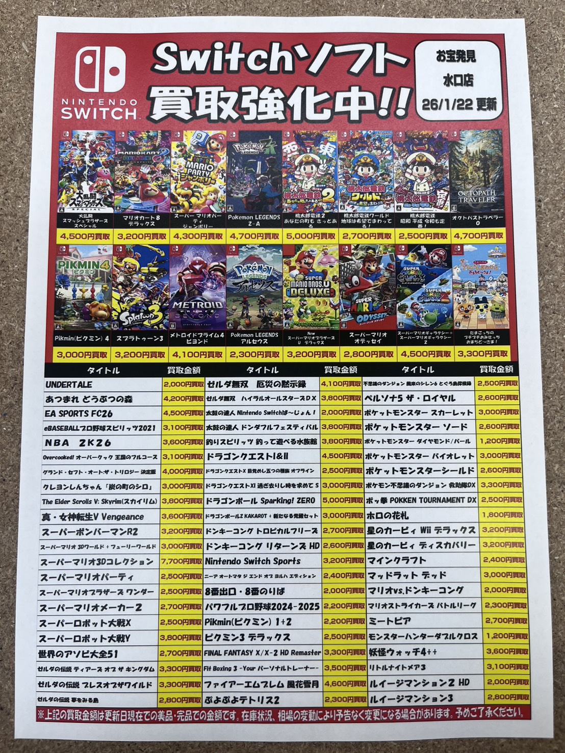 各ゲームの買取価格更新しました✨