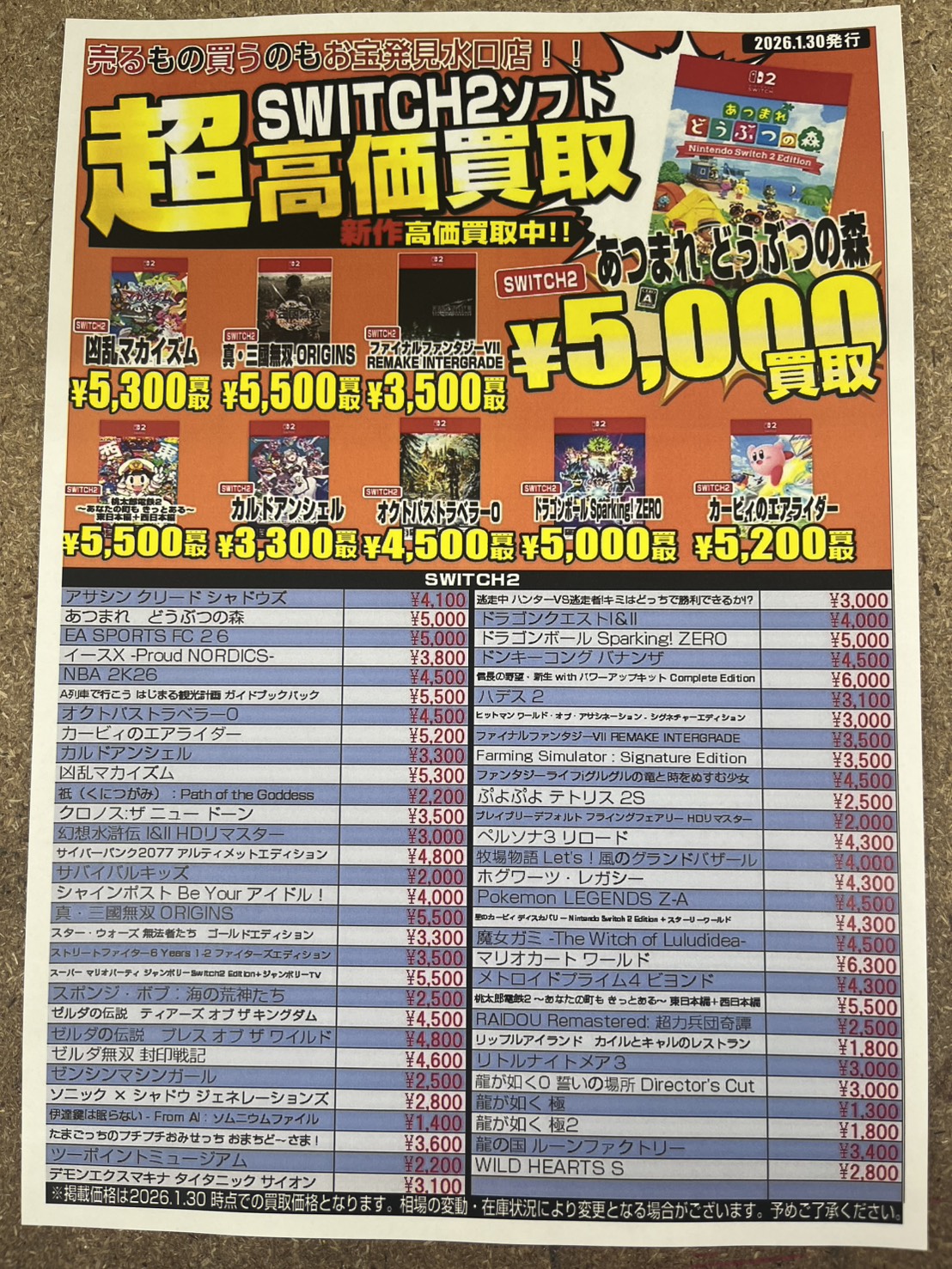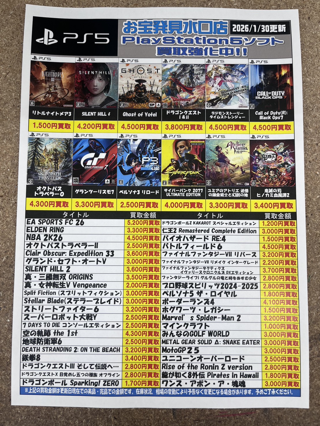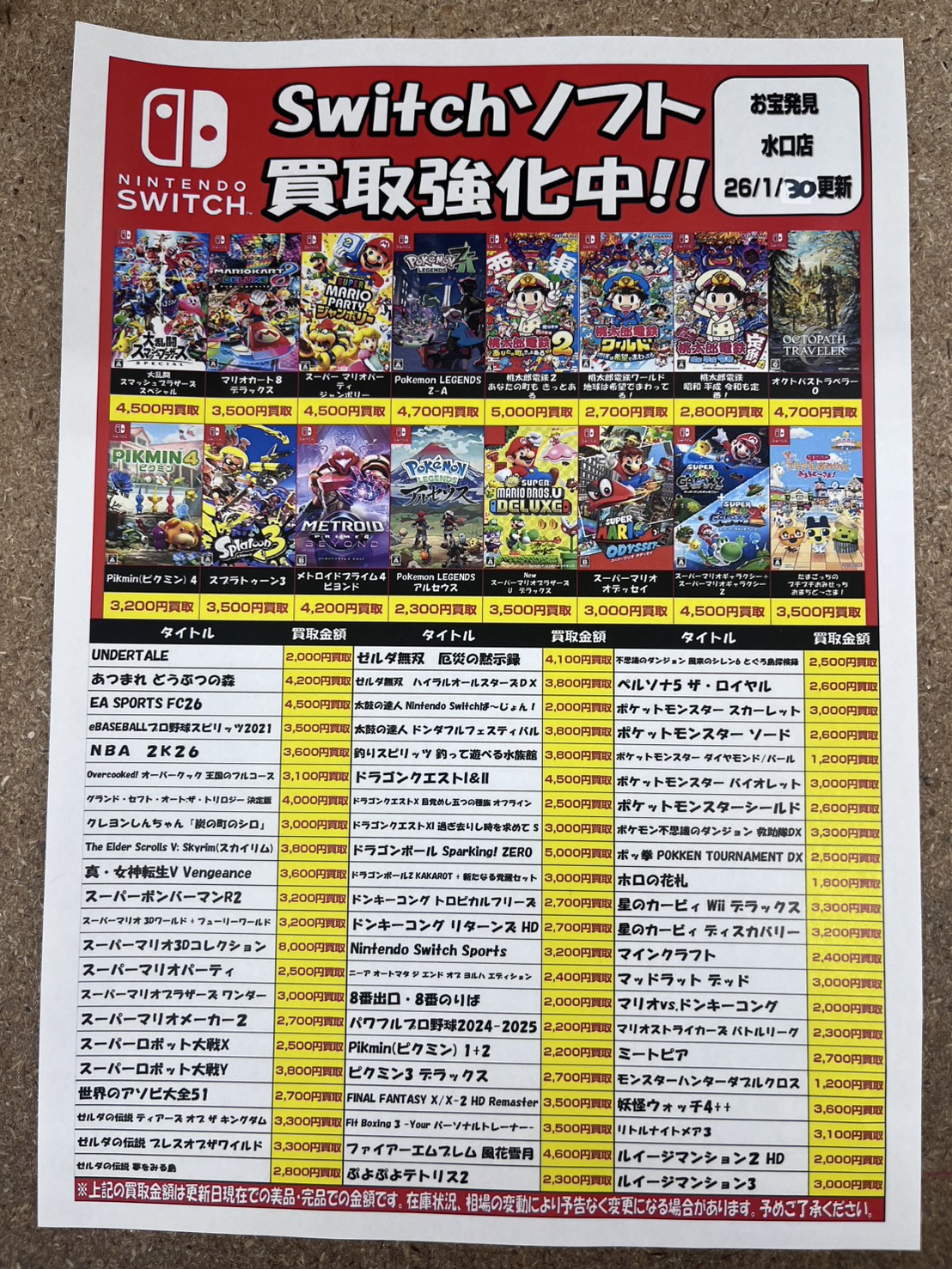 各ゲームソフト買取価格更新‼️