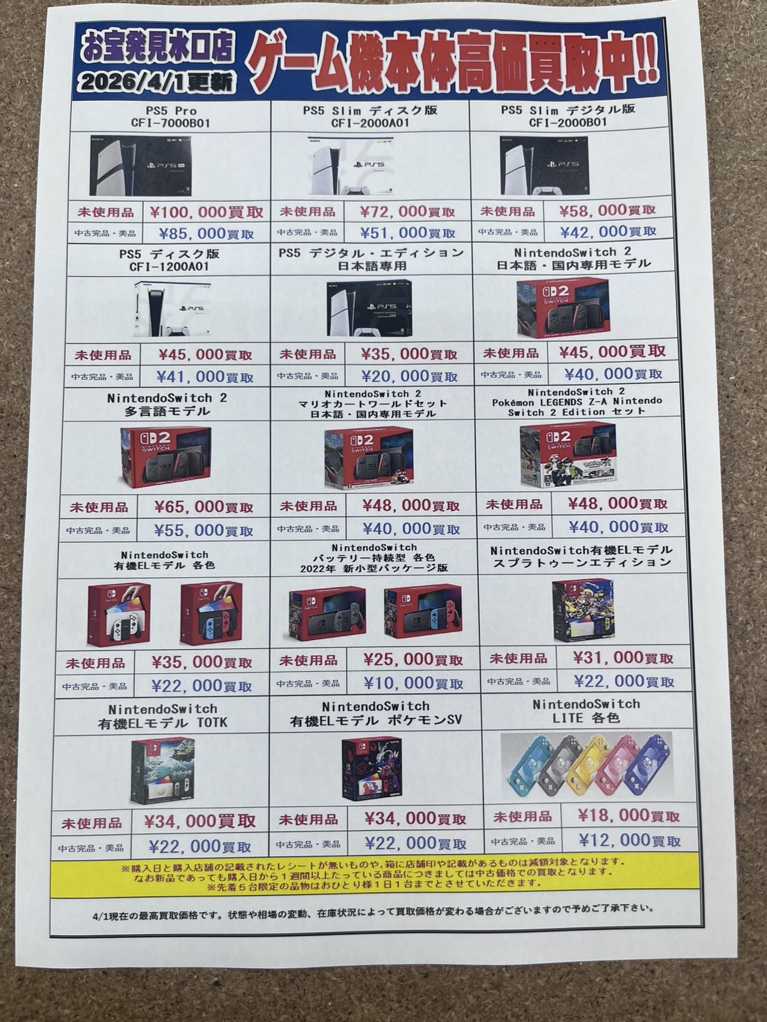 ◆ゲームハード買取価格更新しました‼️◆ NEW 買取告知 ゲーム 2026年4月1日 ゲームハード買取価格更新しました‼️ ✨只今超高額買取実施中✨ 是非この機会に当店へお売り下さい‼️ ※2026/4/1現在の価格となります。 在庫状況などによってお値段が変動いたします。予めご了承ください。 ************************ こちら↓もぜひチェックしてみてくださいね♪(*´▽`*) ・最新のイベント情報はこちら ・最新の買取情報はこちら