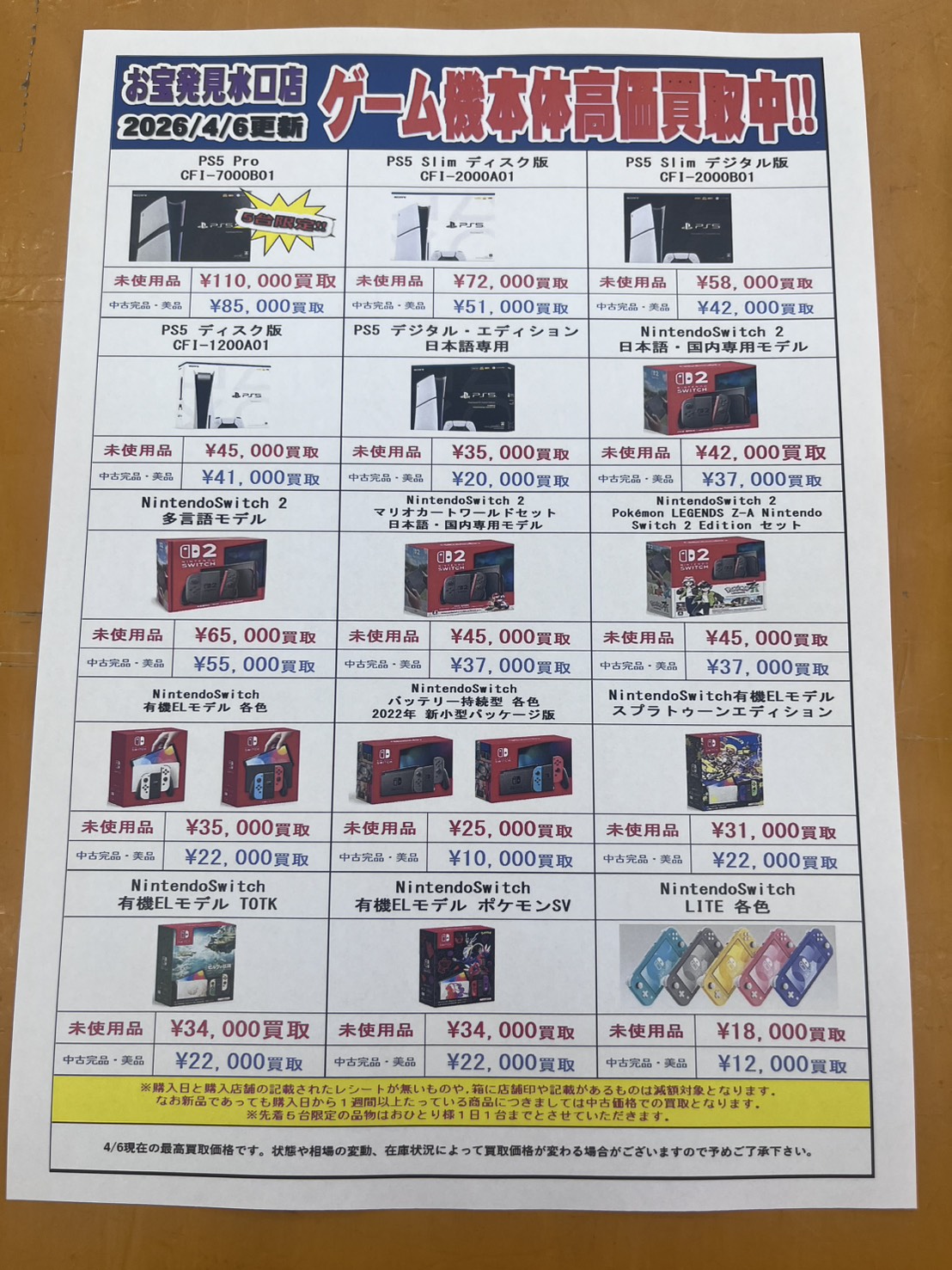 ◆ゲームハードの買取価格更新しました‼️◆ NEW 買取告知 ゲーム 2026年4月6日 ゲームハードの買取価格更新しました‼️ PS5 Pro未使用品買取価格アップ中⤴️ この機会に是非当店へお持ち込み下さい✨ ※2026/4/6現在の価格となります。 在庫状況などによってお値段が変動いたします。予めご了承ください。 ************************ こちら↓もぜひチェックしてみてくださいね♪(*´▽`*) ・最新のイベント情報はこちら ・最新の買取情報はこちら