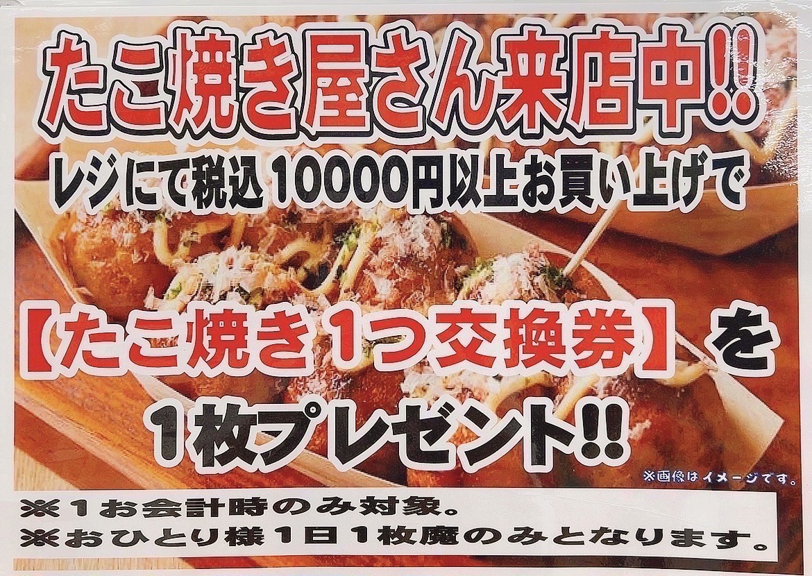🐙11/16(日)福竜さん(たこ焼き・焼きそば屋)来店中🌟 お知らせ 2025年11月16日 🐙11/16(日)福竜さん(たこ焼き・焼きそば屋)来店中🌟 夕方17時頃までのご来店です! フランクフルトもあります❣️ 本日当店のお買い上げ 💴10,000円以上で たこやき1個無料券 お配りしております🎉✨ この機会に欲しかった ゲームやおもちゃなど お買い求めください😊❣️ 店内は飲食禁止 となっておりますので ぜひ帰りに一度 お立ち寄りください🌈🦄✨ 皆様のご来店お待ちしております🕊️