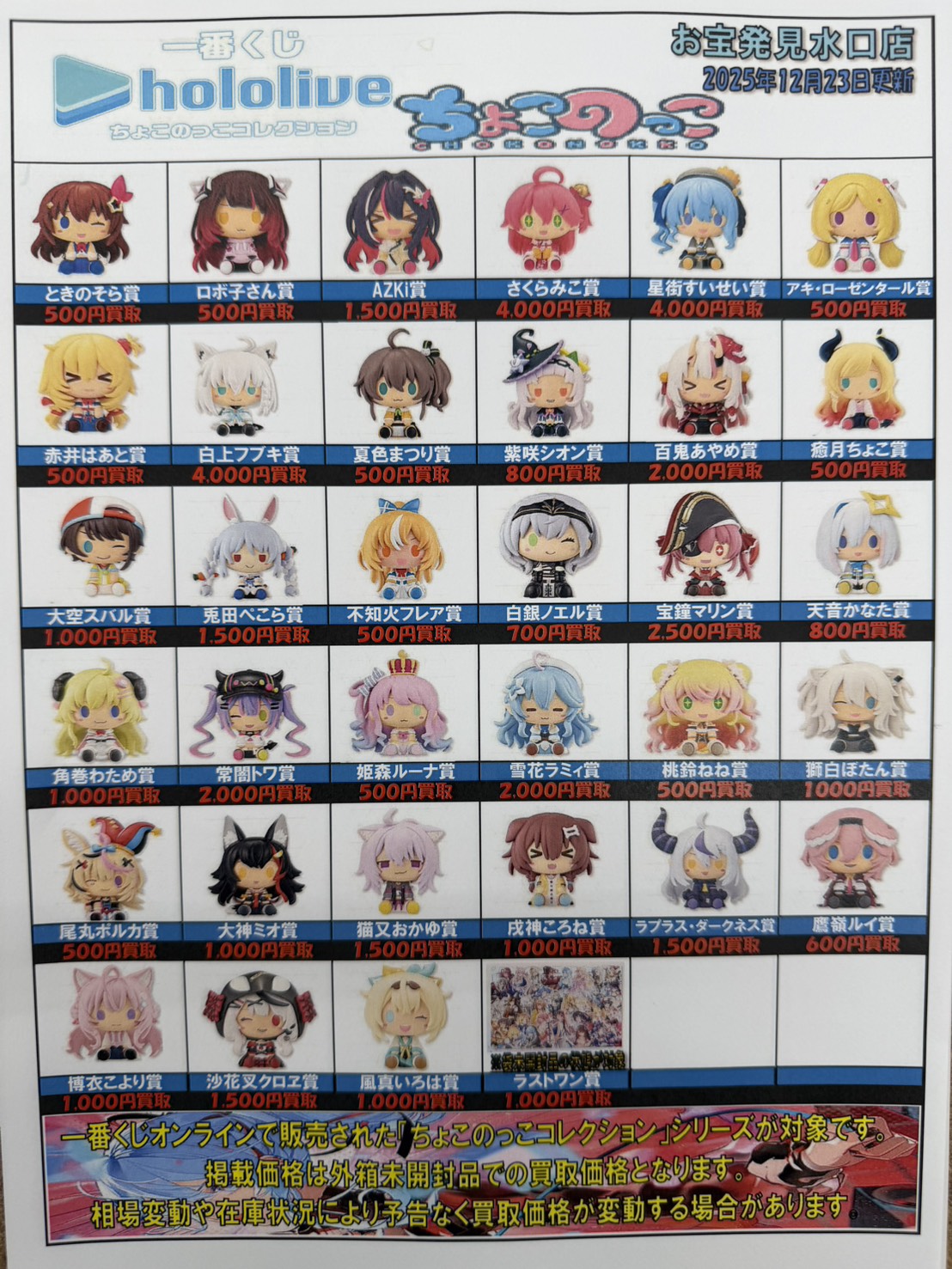 一番くじ ホロライブちょこのっこコレクション◦ホロライブグッズ買取保証は各種予定買取個数に達した為、終了いたしました。 買取告知 2026年1月18日 一番くじ ホロライブちょこのっこコレクション◦ホロライブグッズ買取保証は各種予定買取個数に達した為、終了いたしました。 たくさんの持込ありがとうございました!