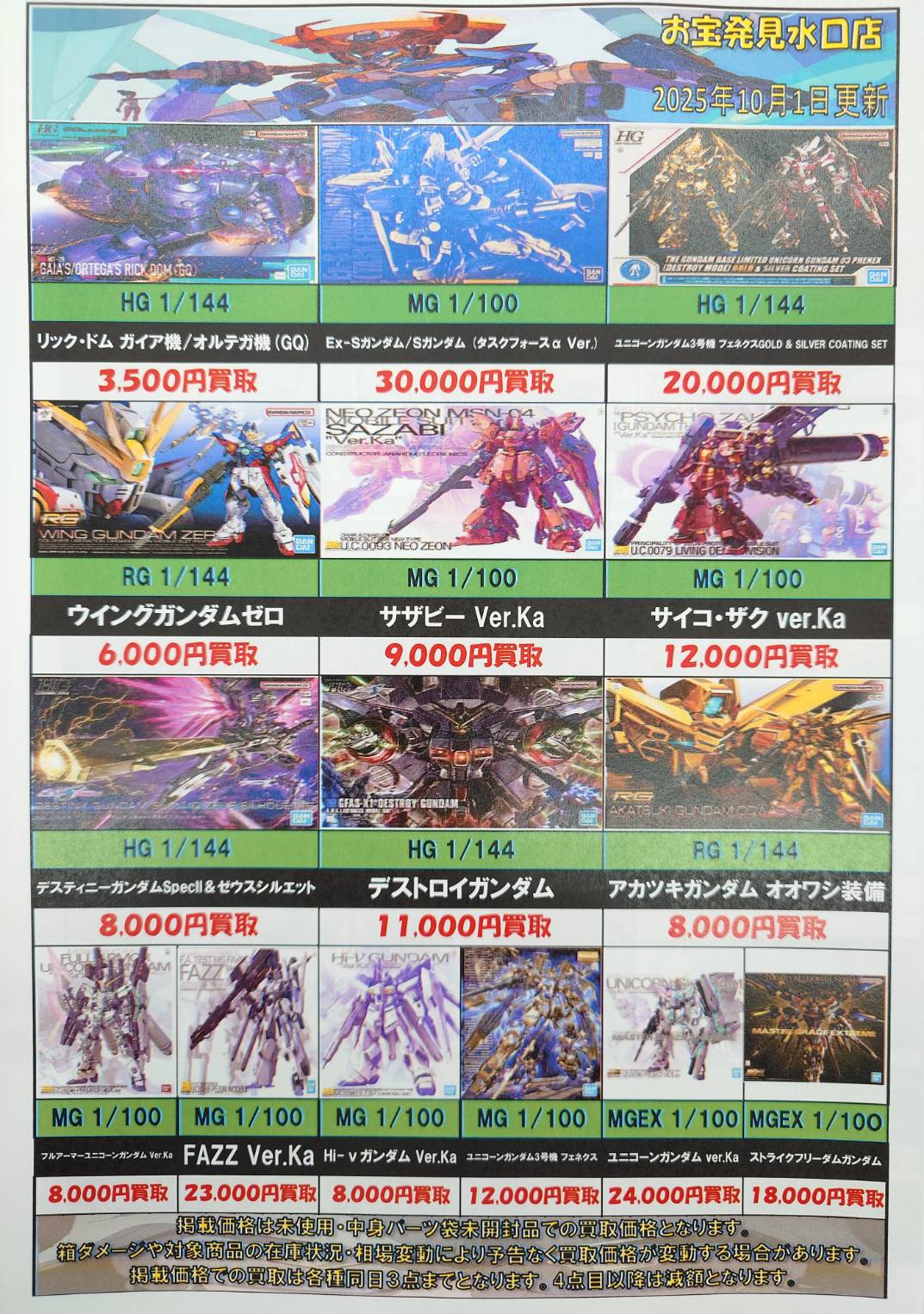 ◆ガンプラ強化買取タイトルを更新しました!◆ NEW 買取告知 おもちゃ 2025年10月1日 ガンプラ強化買取タイトルを更新しました! ぜひ当店までお持ち寄りください! ※2025/10/1現在の価格となります。 在庫状況などによってお値段が変動いたします。予めご了承ください。 ************************ こちら↓もぜひチェックしてみてくださいね♪(*´▽`*) ・最新のイベント情報はこちら ・最新の買取情報はこちら