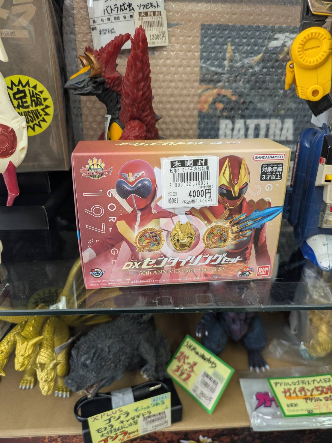 ■おもちゃ特撮コーナーショーケースに新しい商品を追加しました!■ おもちゃ ガチャ 2025年10月28日 おもちゃ特撮コーナーショーケースに新しい商品を追加しました! 今回はなんと!? 炎神戦隊ゴーオンジャーのG12を追加しました!! 他にも全スーパー戦隊展限定の DXセンタイリングセット 50th ANNIVERSARY Special Set も追加してます!!👌🐺 ぜひお買いお求めください!! ※2025/10/28 現在の価格となります。 在庫状況などによってお値段が変動いたします。予めご了承ください。