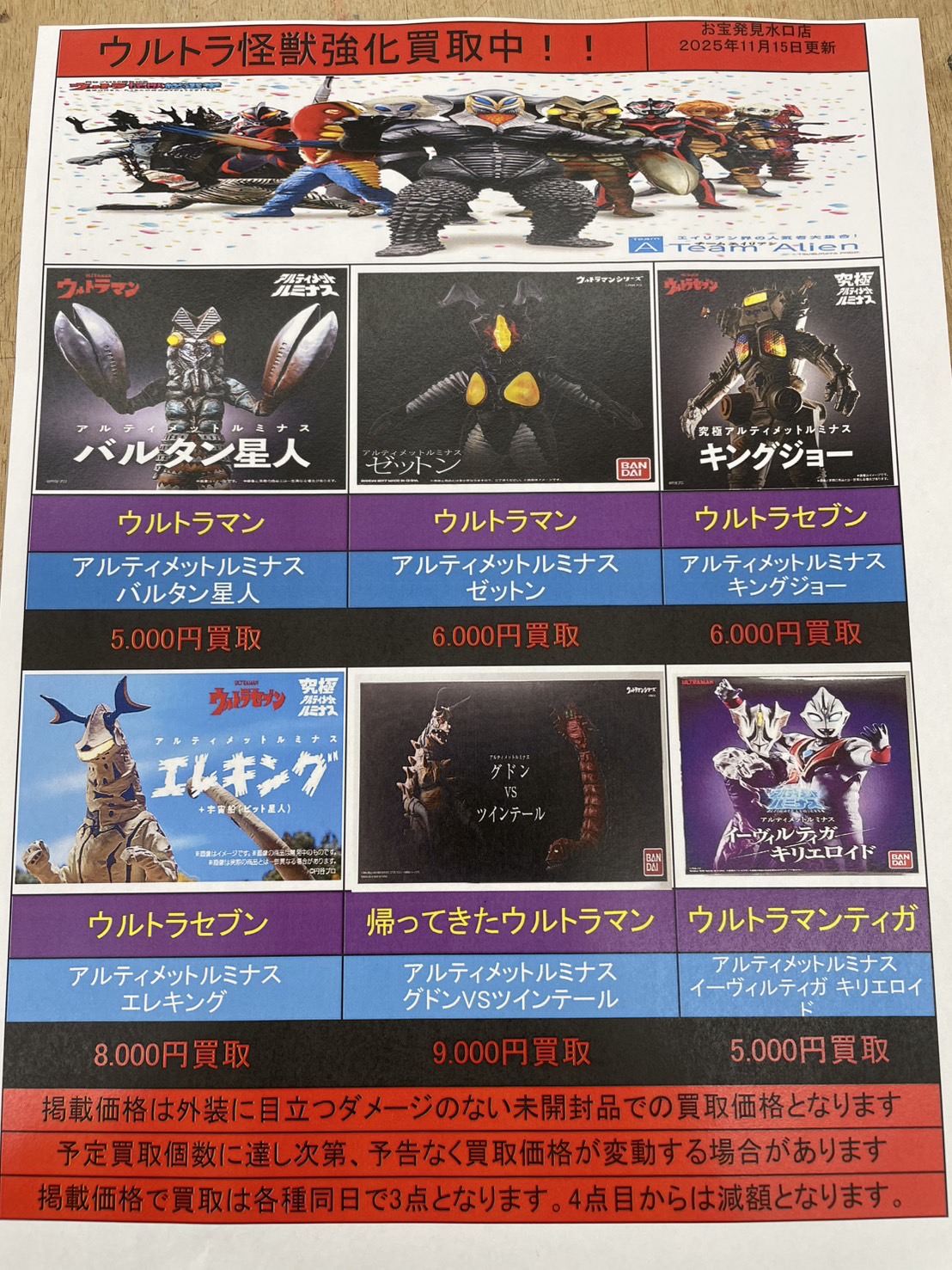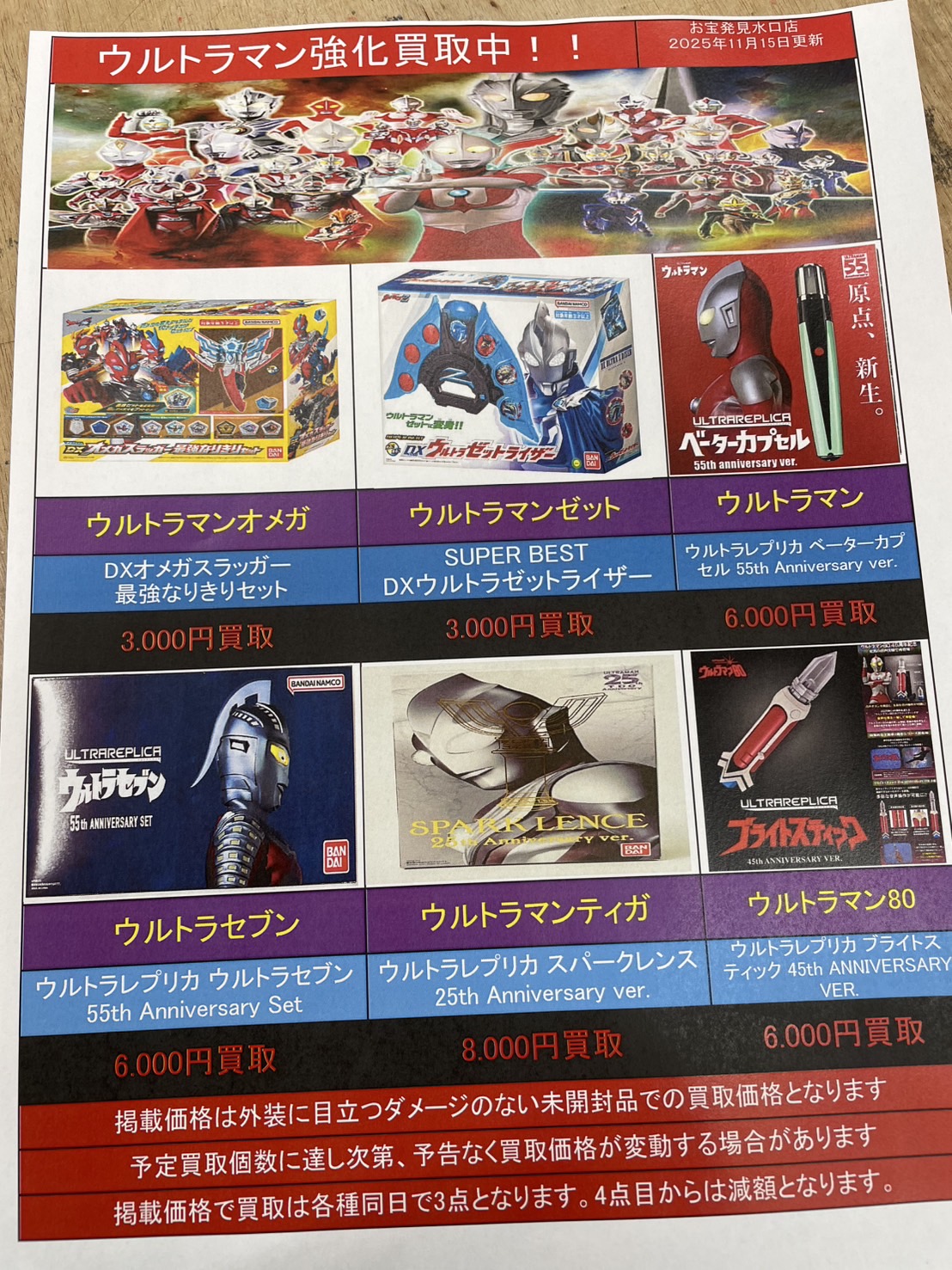 ウルトラマン変身アイテム、ウルトラ怪獣買取リストを作成しました!! 買取告知 おもちゃ 2025年11月16日 当店おもちゃコーナーでは新たに ウルトラマン変身アイテム、ウルトラ怪獣買取リストを作成しました!! 是非当店買取へお持ちください!! ※2025/11/16現在の価格となります。 在庫状況などによってお値段が変動いたします。予めご了承ください。 ************************ こちら↓もぜひチェックしてみてくださいね♪(*´▽`*) ・最新のイベント情報はこちら ・最新の買取情報はこちら
