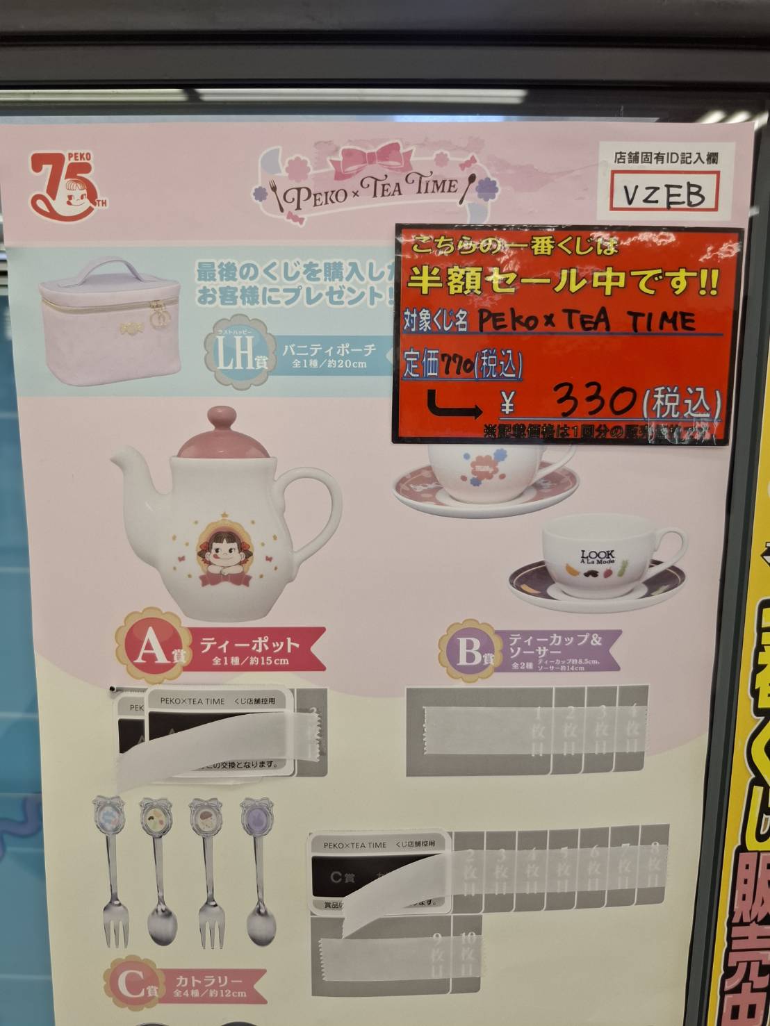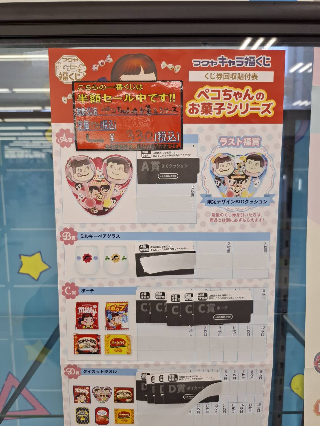只今より 「フクヤ キャラ福くじペコちゃんのお菓子シリーズ」 「タイトーくじ PEKO ×TEA TIME 」 以上の2種の半額セールを開始します✨️ おもちゃ 2025年11月17日 只今より 「フクヤ キャラ福くじペコちゃんのお菓子シリーズ」 「タイトーくじ PEKO ×TEA TIME 」 以上の2種の半額セールを開始します✨️ 各賞やラストワンをGET するチャンスですので、ぜひこの機会にお買い求めください😊 お待ちしております。