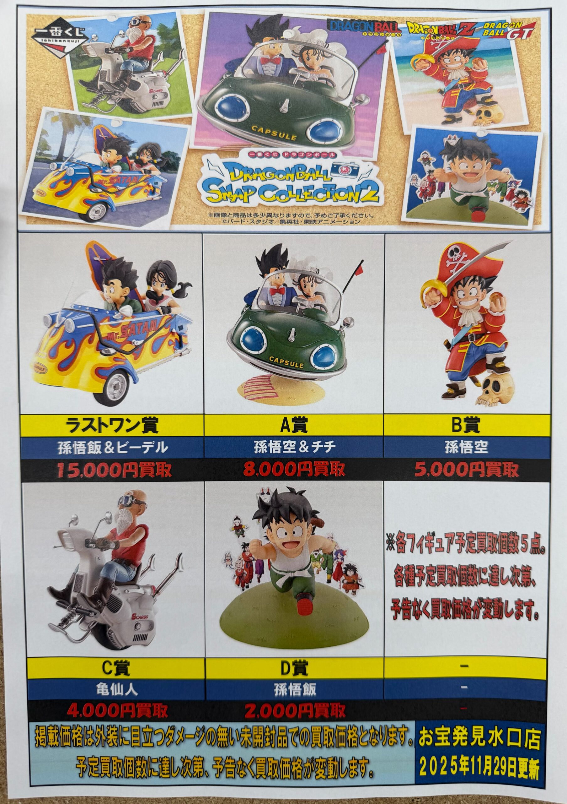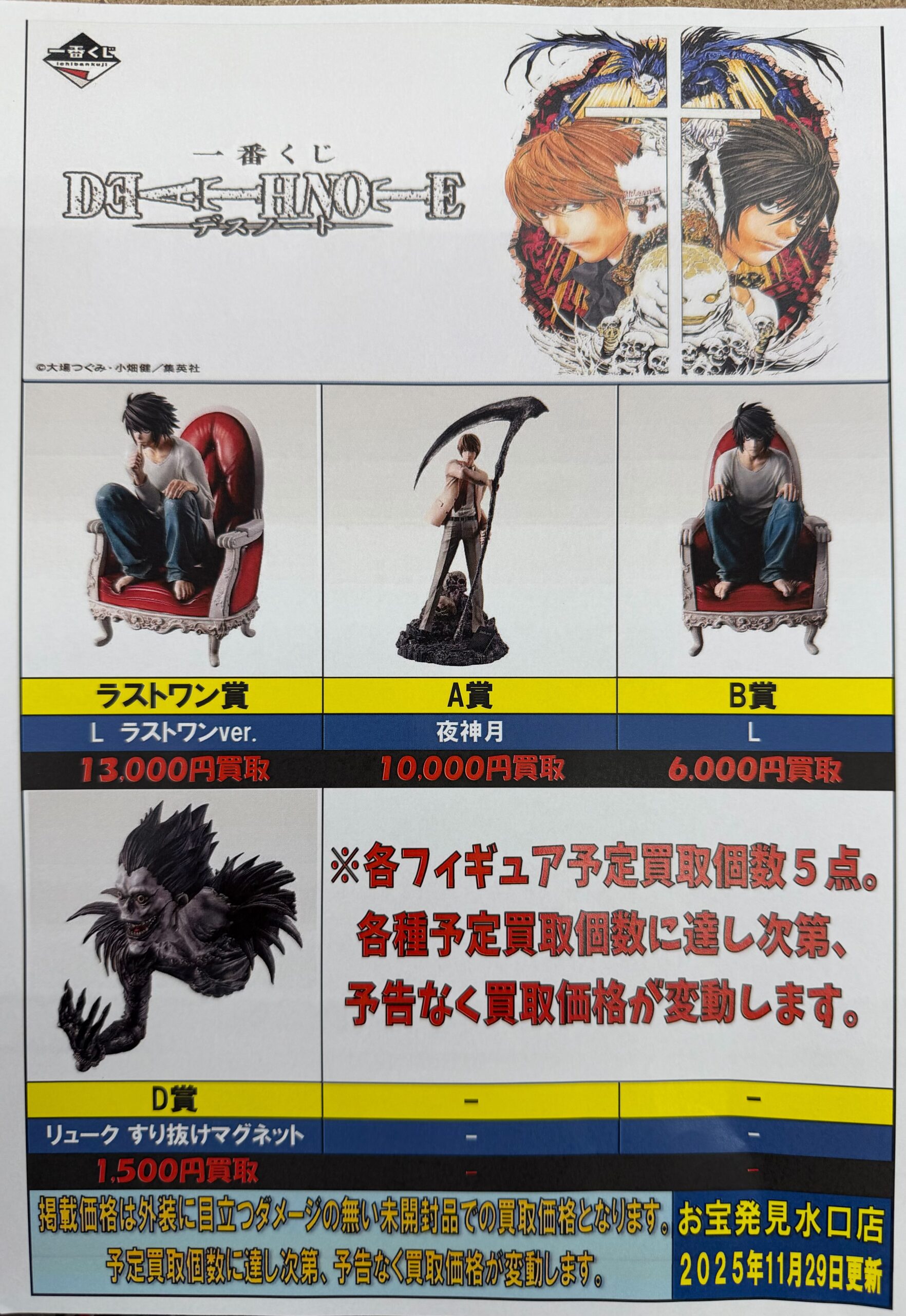 ◆《一番くじ ドラゴンボール Snap Collection2|鬼滅の刃 姉の仇|デスノート》各種強化買取しています!◆ NEW イベント 買取告知 おもちゃ 2025年11月29日 本日発売の一番くじ ドラゴンボール Snap Collection2 鬼滅の刃 姉の仇 デスノート 各種強化買取しています! ぜひ当店買取までお持ち寄りください! ※掲載価格での買取は予定在庫数に達し次第予告なく終了します。 ※2025/11/29現在の価格となります。 在庫状況などによってお値段が変動いたします。予めご了承ください。 ************************ こちら↓もぜひチェックしてみてくださいね♪(*´▽`*) ・最新のイベント情報はこちら ・最新の買取情報はこちら