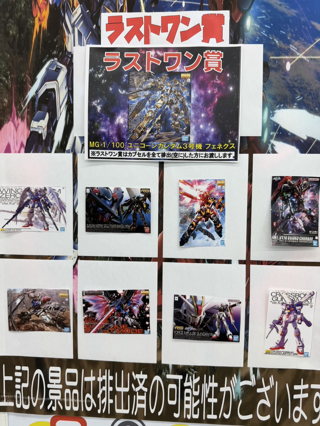 ■おもちゃガンプラロッカーガチャが景品を新たに稼動しました!■ おもちゃ ガチャ 2025年12月11日 おもちゃガンプラロッカーガチャが景品を新たに稼動しました! 今回のラストワン賞にはMG 1/100 ユニコーンガンダム3号機フェネクスをご用意しました! 皆様の挑戦お待ちしています!