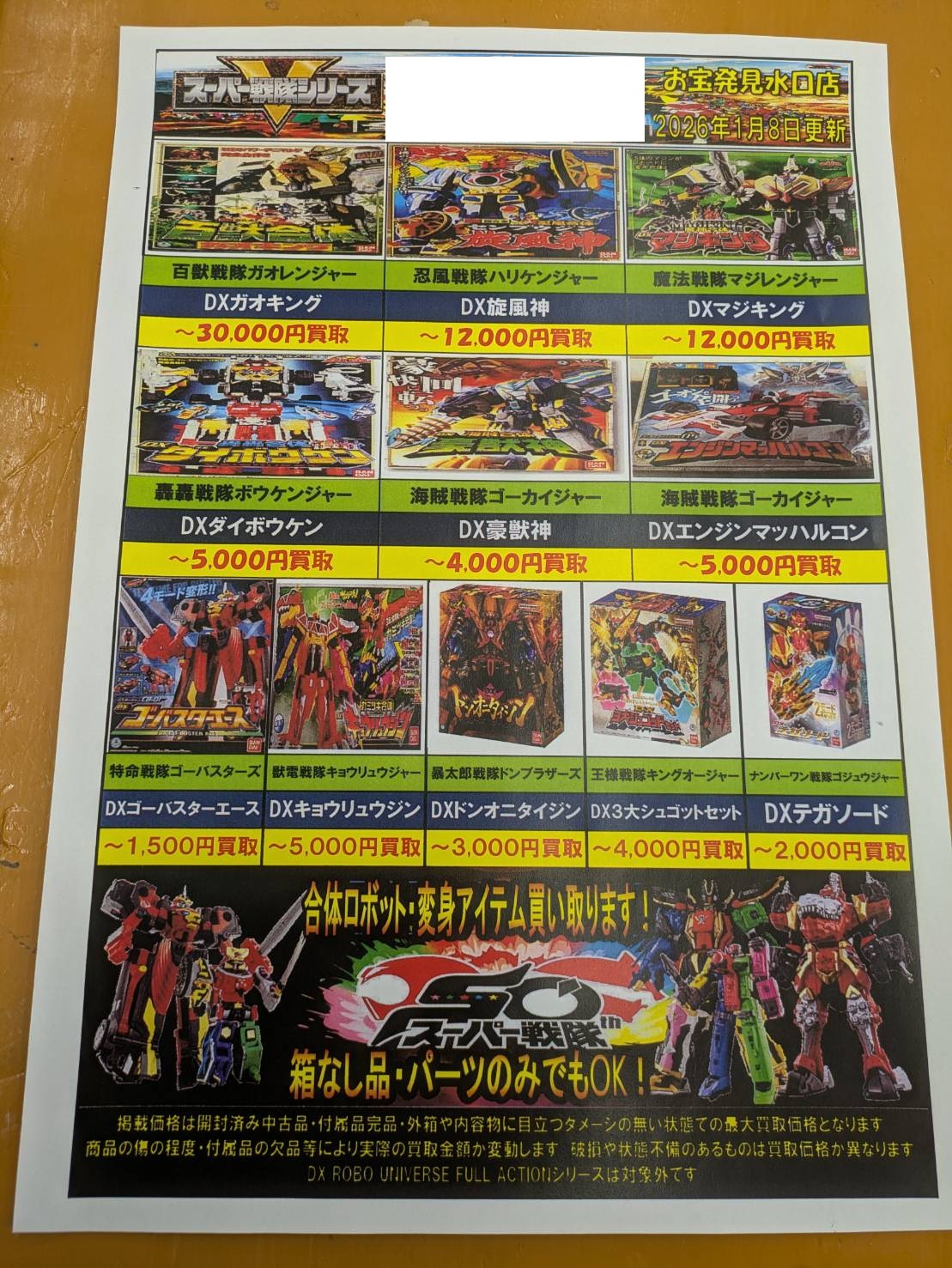 仮面ライダーとスーパー戦隊買取リストを更新しました!! 買取告知 おもちゃ 2026年1月8日 仮面ライダーとスーパー戦隊買取リストを更新しました!! 是非当店買取へお持ちください!! ※2026/1/8現在の価格となります。 在庫状況などによってお値段が変動いたします。予めご了承ください。 ************************ こちら↓もぜひチェックしてみてくださいね♪(*´▽`*) ・最新のイベント情報はこちら ・最新の買取情報はこちら