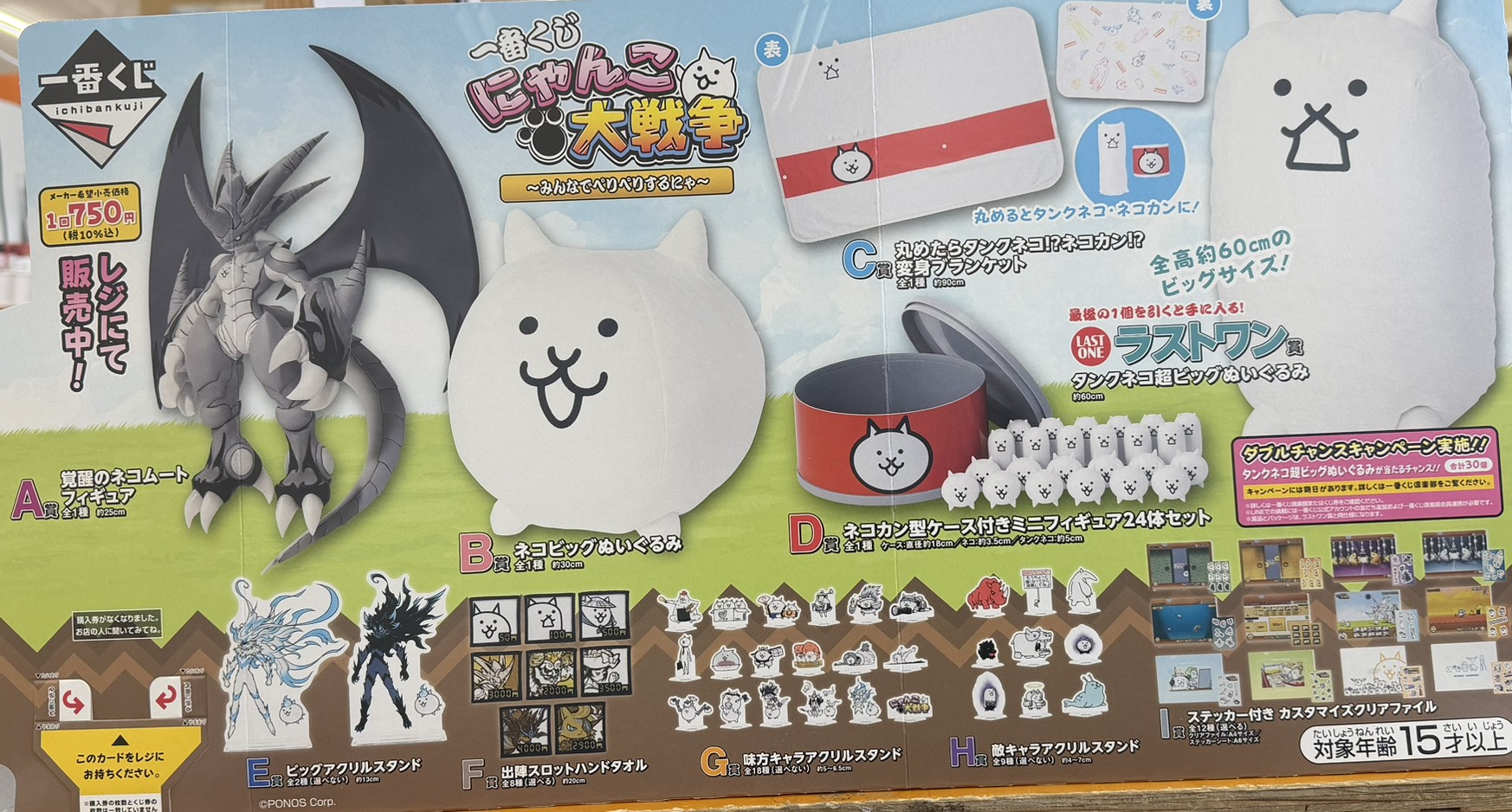 ラストワン賞には全高約60cmのビッグサイズタンクネコ超ビッグぬいぐるみです
