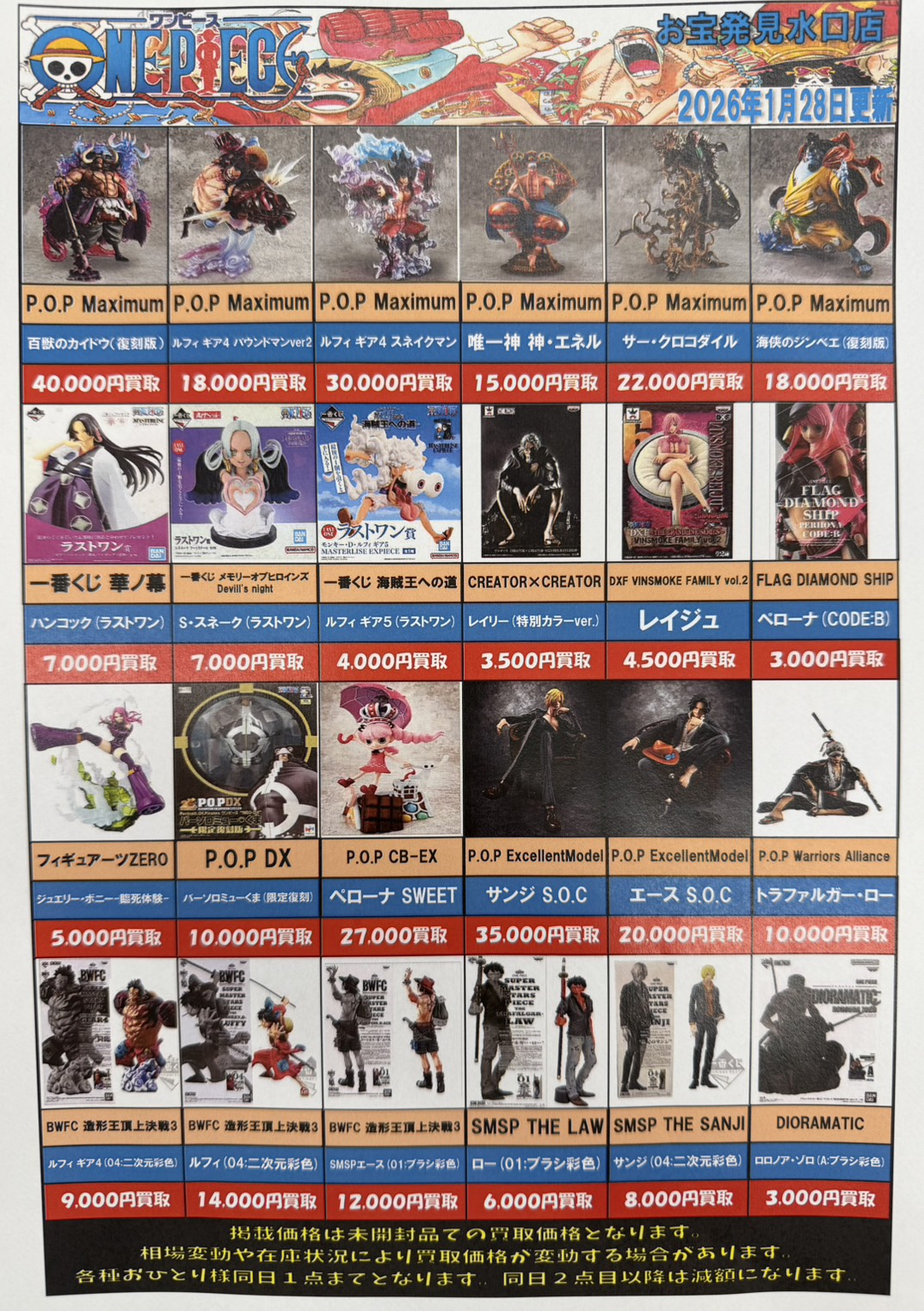 ワンピースフィギュアの買取チラシを更新しました!