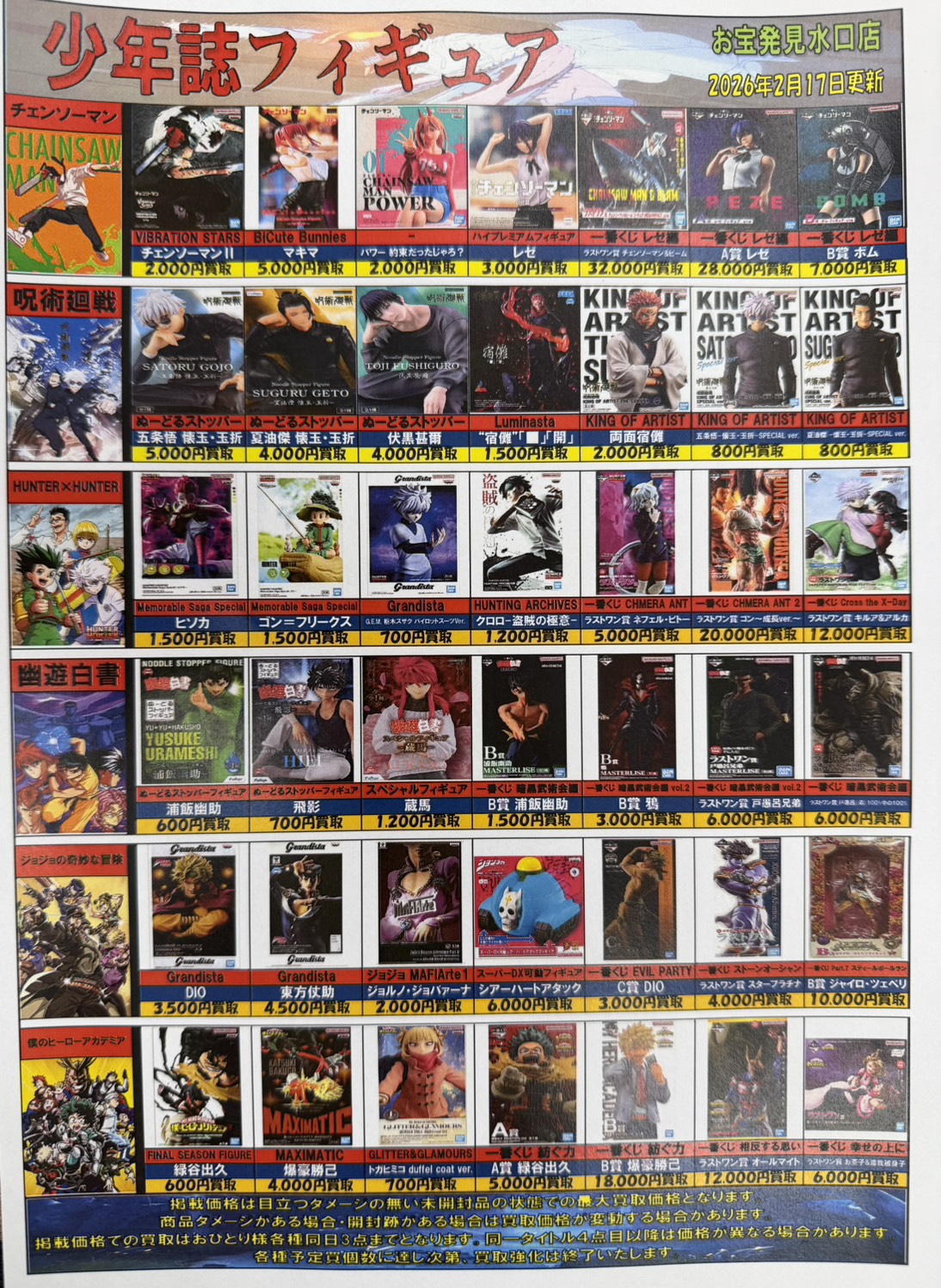 少年誌プライズフィギュア◦一番くじフィギュア強化買取しています!