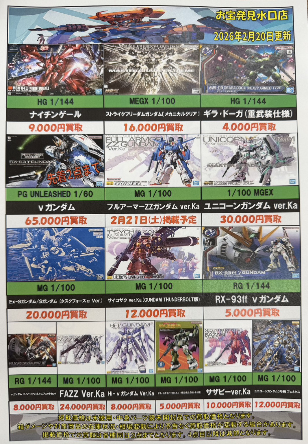 ◆ガンプラ商品各種強化しています!◆ NEW 買取告知 おもちゃ 2026年2月20日 ガンプラ商品各種強化しています! ぜひ当店買取までお持ち寄りください! ※2026/2/20現在の価格となります。 在庫状況などによってお値段が変動いたします。予めご了承ください。 ************************ こちら↓もぜひチェックしてみてくださいね♪(*´▽`*) ・最新のイベント情報はこちら ・最新の買取情報はこちら