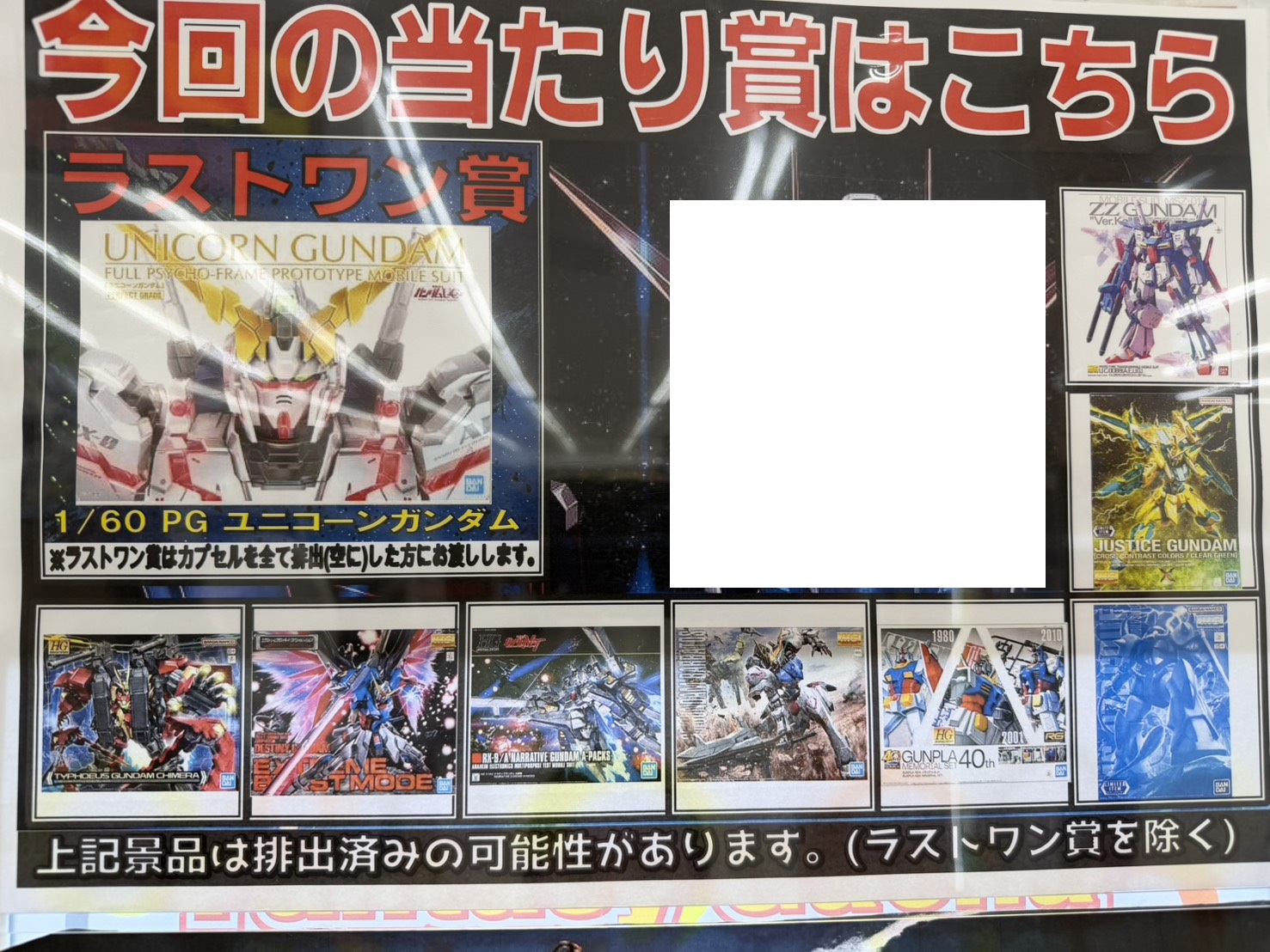 今回のラストワン賞にはPG 1/60 ユニコーンガンダムをご用意しました!