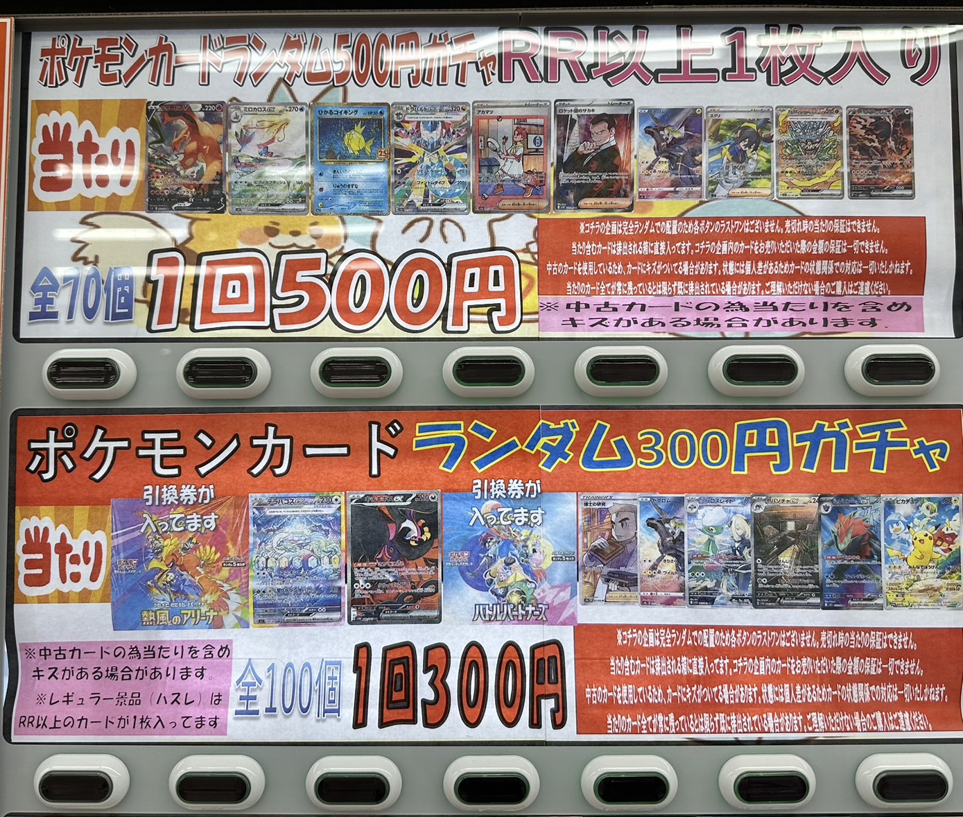 ポケモンカード完全ランダム 300、500円ガチャ補充しました!■ カード ガチャ 2025年5月31日 ポケモンカード完全ランダム 300、500円ガチャ補充しました! 当たり、レーンの個数すべてランダムです。 是非チャレンジして下さい!!