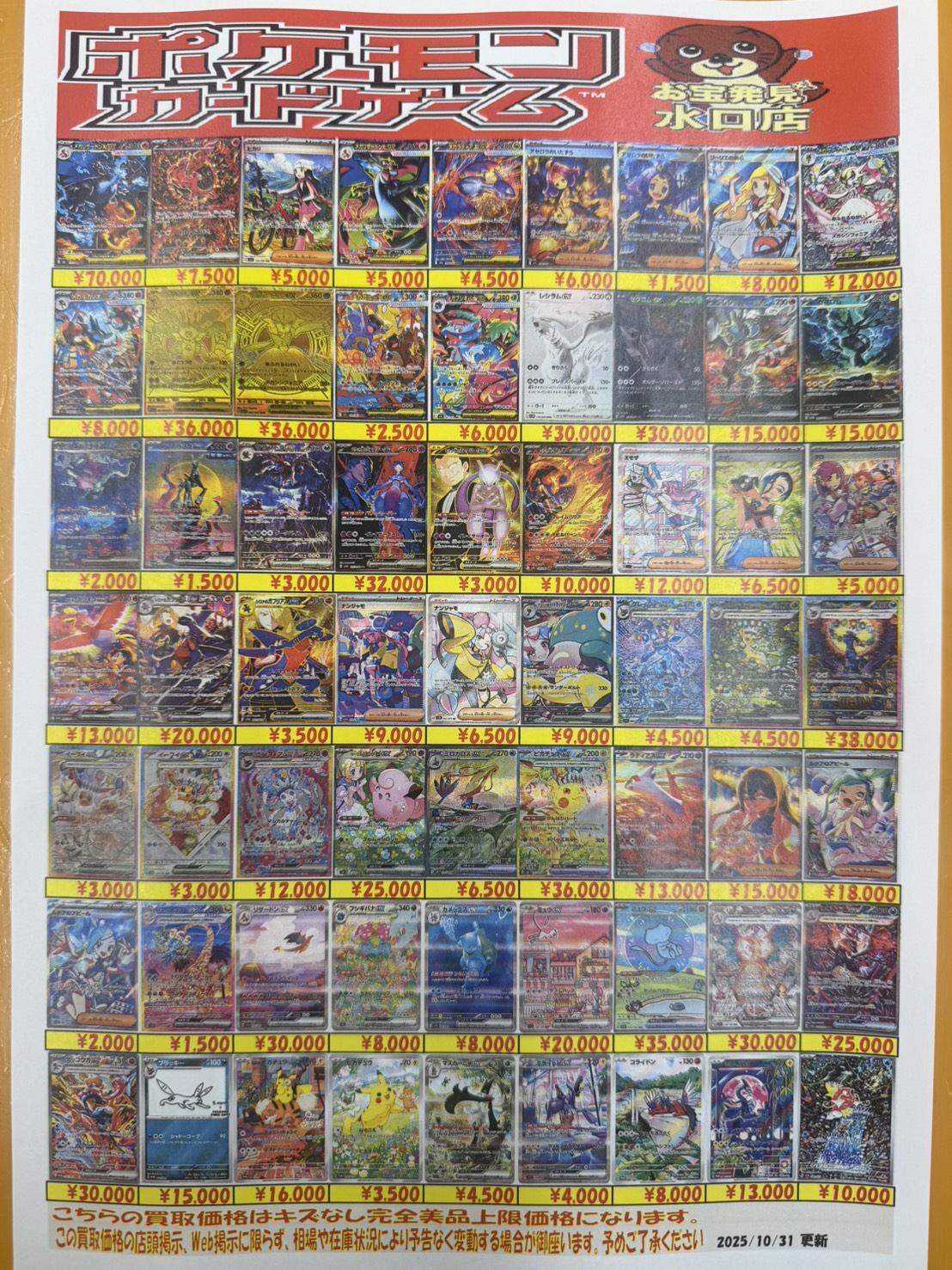 ポケモンカードシングルカードリスト更新しました! NEW 買取告知 カード 2025年10月31日 キズ、白カケありはリスト対象外になります。 とコメントお願いします ※2025/10/31現在の価格となります。 在庫状況などによってお値段が変動いたします。予めご了承ください。 ************************ こちら↓もぜひチェックしてみてくださいね♪(*´▽`*) ・最新のイベント情報はこちら ・最新の買取情報はこちら