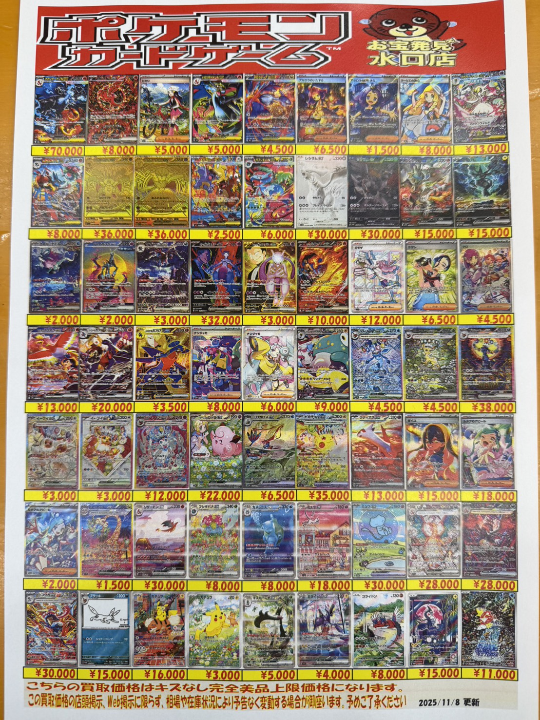 ポケモンカードシングルカードリスト更新しました! NEW 買取告知 カード 2025年11月8日 キズ、白カケありはリスト対象外になります。 ※2025/11/8現在の価格となります。 在庫状況などによってお値段が変動いたします。予めご了承ください。 ************************ こちら↓もぜひチェックしてみてくださいね♪(*´▽`*) ・最新のイベント情報はこちら ・最新の買取情報はこちら