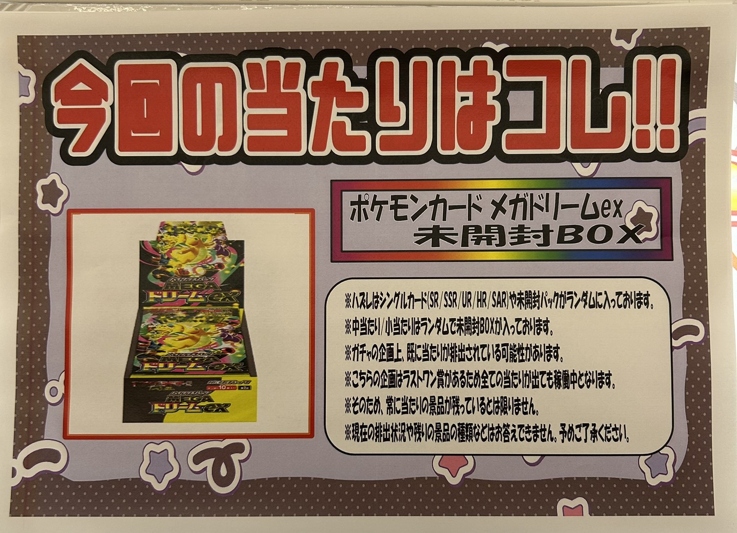 ■『ポケカUNLOCKロッカーガチャ』景品補充を行いました❗️■ カード ガチャ 2025年12月8日 売り切れてました『ポケカUNLOCKロッカーガチャ』景品補充を行いました❗️ 今回の当たりは 「MEGAドリームex未開封BOX」 ラストワンには 「スペシャルBOX ポケモンセンター トウホク 未開封BOX」 をご用意してます! 各種パックやシングルカードが入ってます! ぜひこの機会にチャレンジしに来てください!