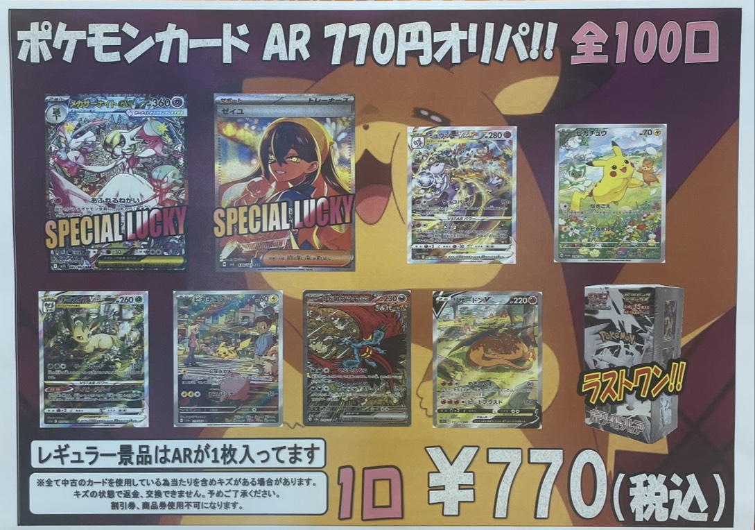 ポケモンカードAR 770円オリパ 新しく販売中です✨ カード ガチャ 2026年1月6日 ポケモンカードAR 770円オリパ 新しく販売中です✨ ラストワンに『ホワイトフレア デラックス 未開封BOX』 大当たりに『メガサーナイトex SAR』 『ゼイユ SAR』 など当たります🎯 チャレンジお待ちしております😼