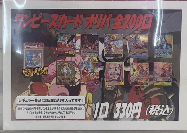 売り切れていました《ワンピースカード330円オリパ》販売しています! カード 2026年3月22日 売り切れていましたワンピースカード330円オリパ販売しています! ラストワンに 『コビー OP02-098 PSA10』 大当たりに『ヤマトOP06-022』 など当たります🎯 チャレンジお待ちしております😼