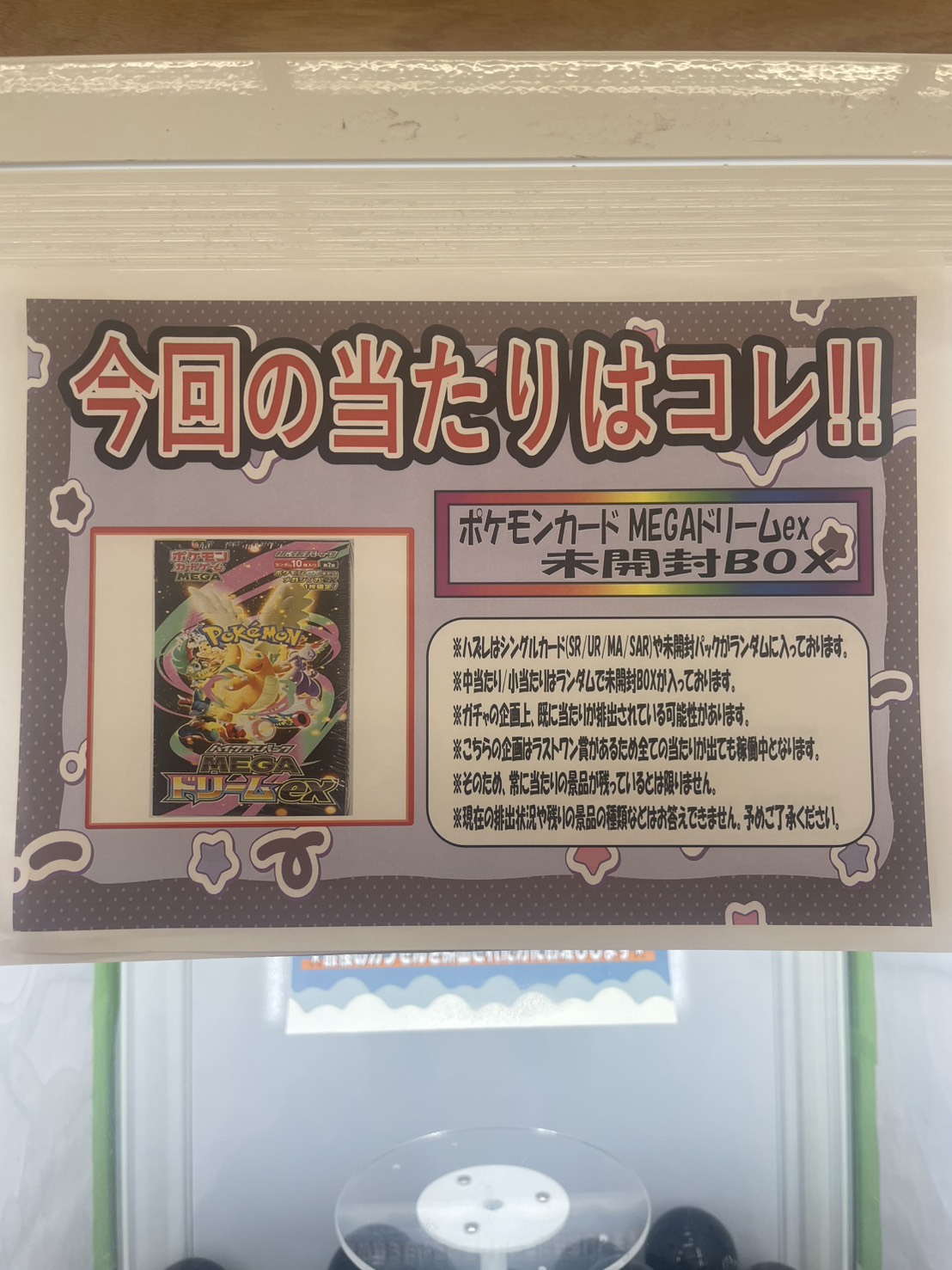 売り切れてました 『ポケカUNLOCKロッカーガチャ』 景品補充を行いました❗️ カード ガチャ 2026年3月22日 売り切れてました 『ポケカUNLOCKロッカーガチャ』 景品補充を行いました❗️ 今回の当たりは 「MEGAドリームex未開封BOX」 ラストワンには「黒炎の支配者 未開封BOX」 をご用意してます! ハズレにはパックやシングルカードが入ってます! ぜひこの機会にチャレンジしに来てください!